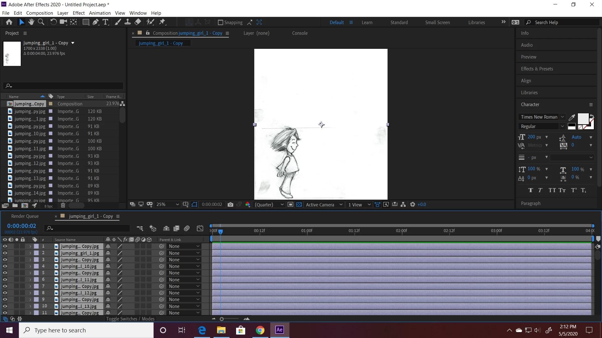What i want to do is use the keyframe assistant --> sequence layers to get the comp to playback looking something like a girl jumping.