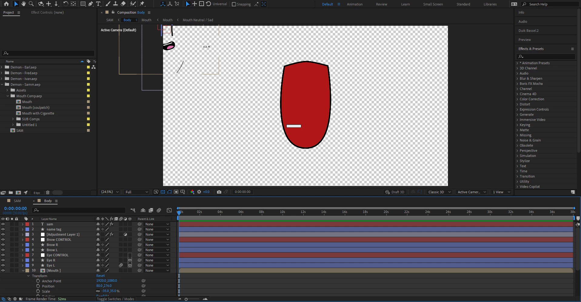 When doing so, SOME (the weird part to me since they're all the same) "Character" projects load improperly. The shape layers pre-composed into a "Body Composition" get blown away from their original positions.