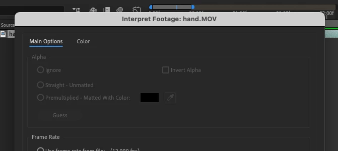 Importing transparent .mov file into after effects - shows with black background