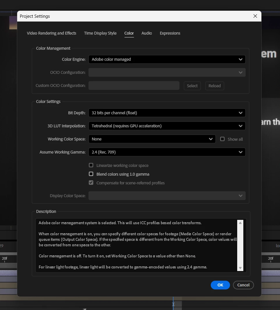 Why whenever I press "Replace with After Effects composition", in After Effects it then tells me to change Color Space to Rec 709 Gamma 2.4?