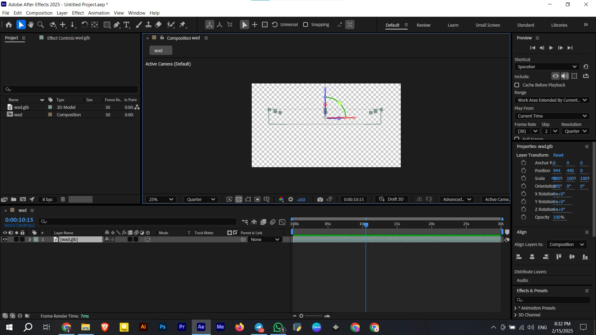 When I add a 3d element in glb format I can't see it in the workspace, I need a quick solution to the problem plz!