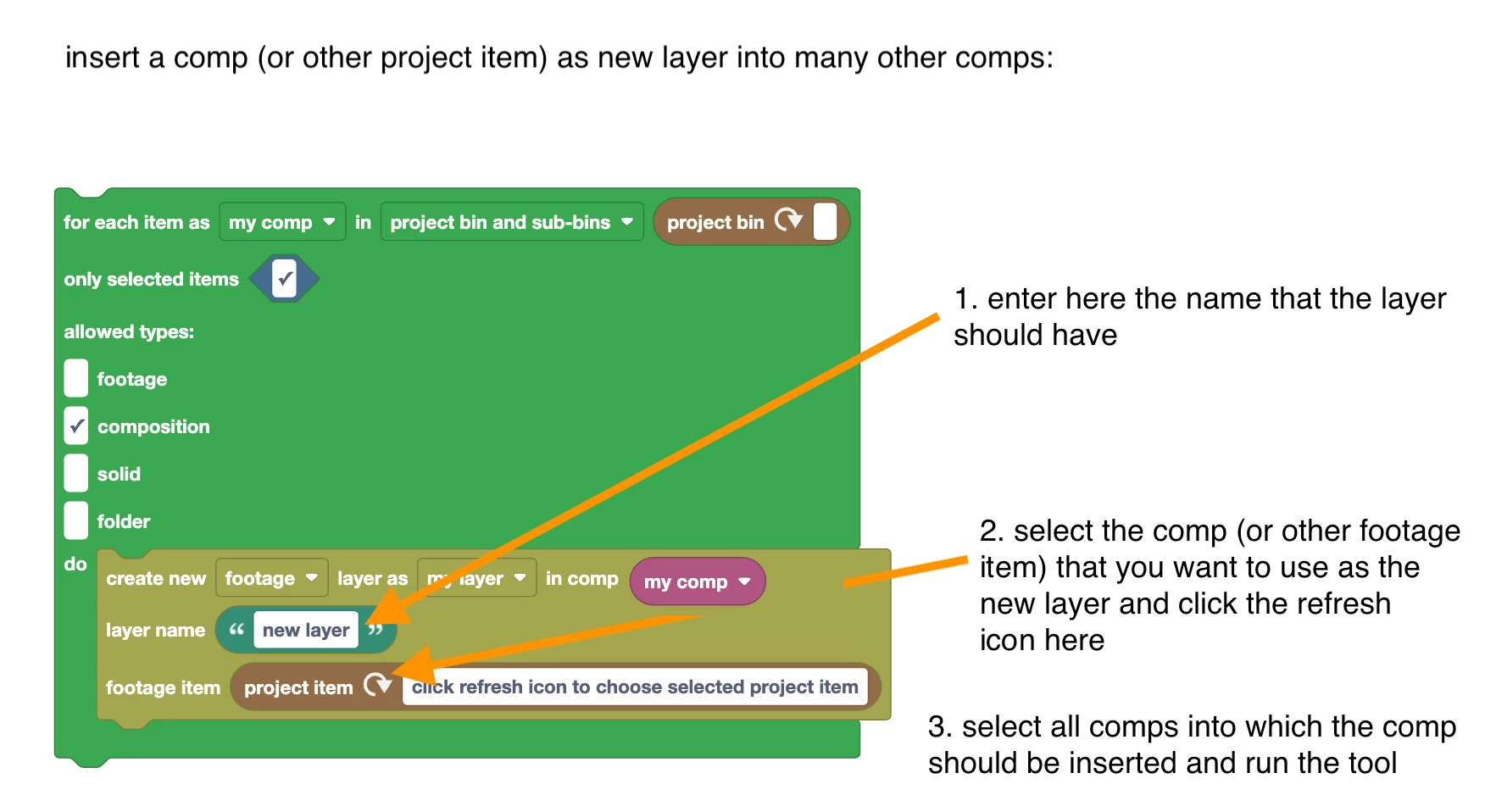 - Select the comp that is going into other comps