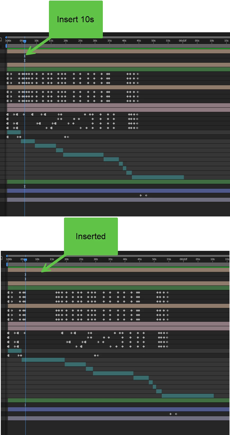 I'd like to extend my composition by basically shifting everything after a point by a defined duration... is there a way to do this? Similarly, I imagine there could be cases where I'd want to 'cut out' a range of time.