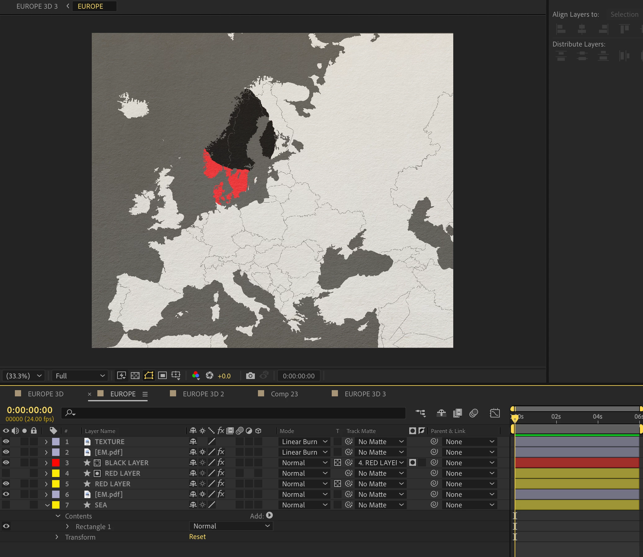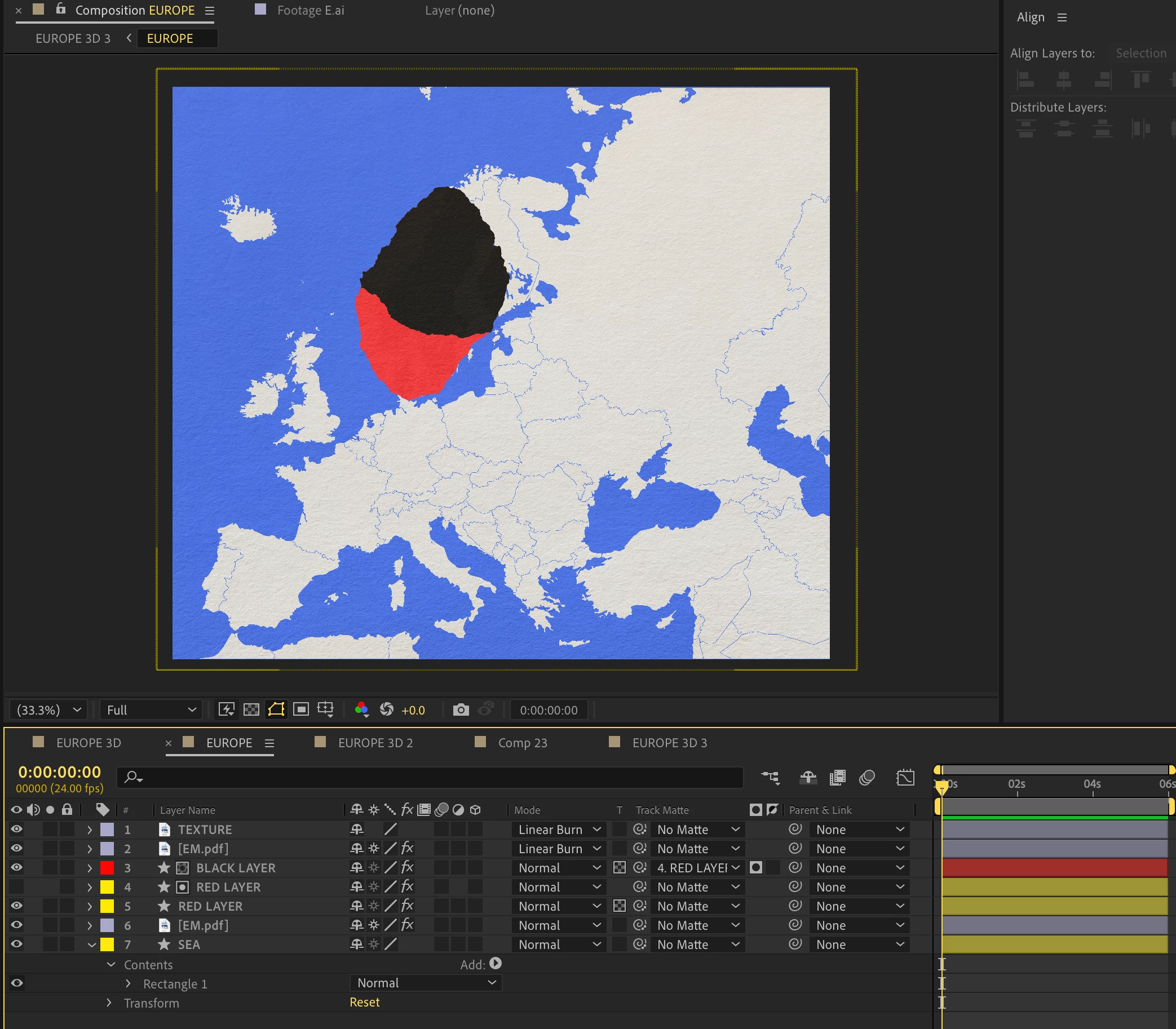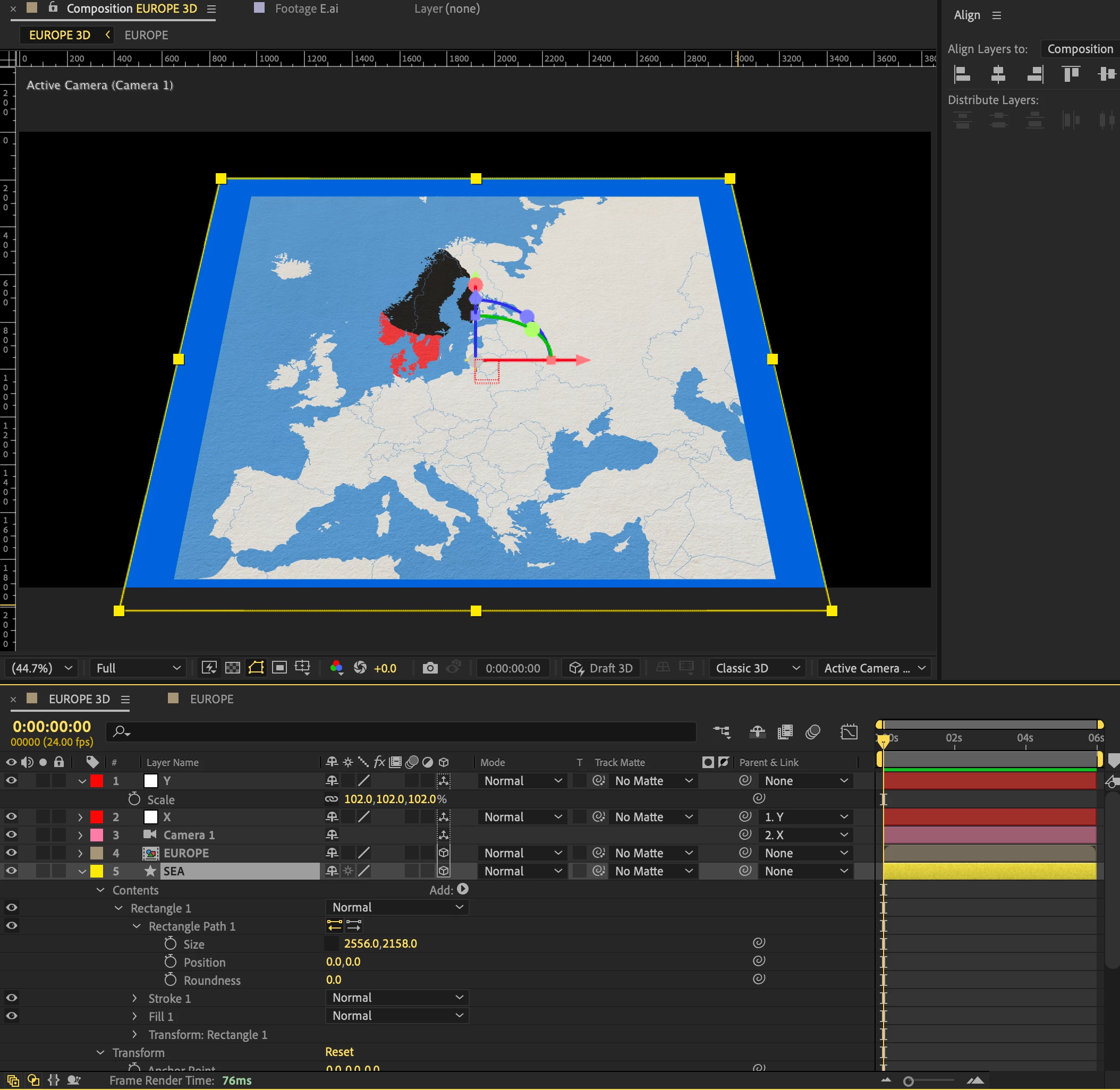 I have a 2D map of Europe that I pre-composed into a 3D composition with a null-parented camera.