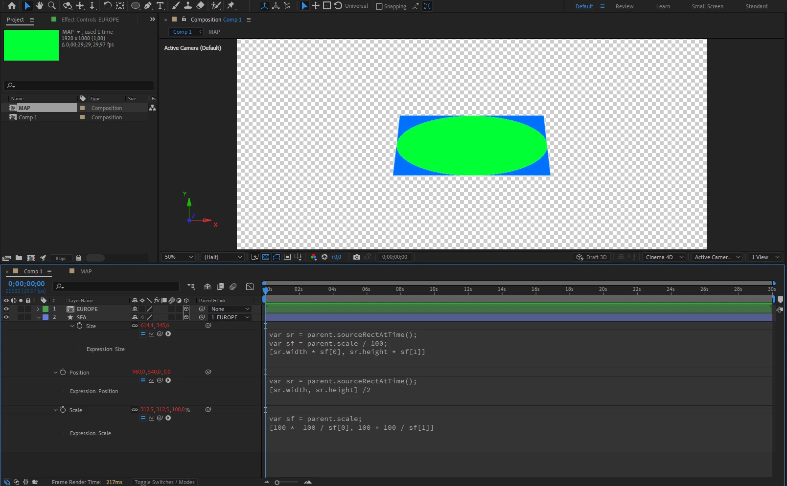 Is there an expression I can use that would make the Sea layer size match the Pre-Comp layer Map size, so I don't have to do this manually?