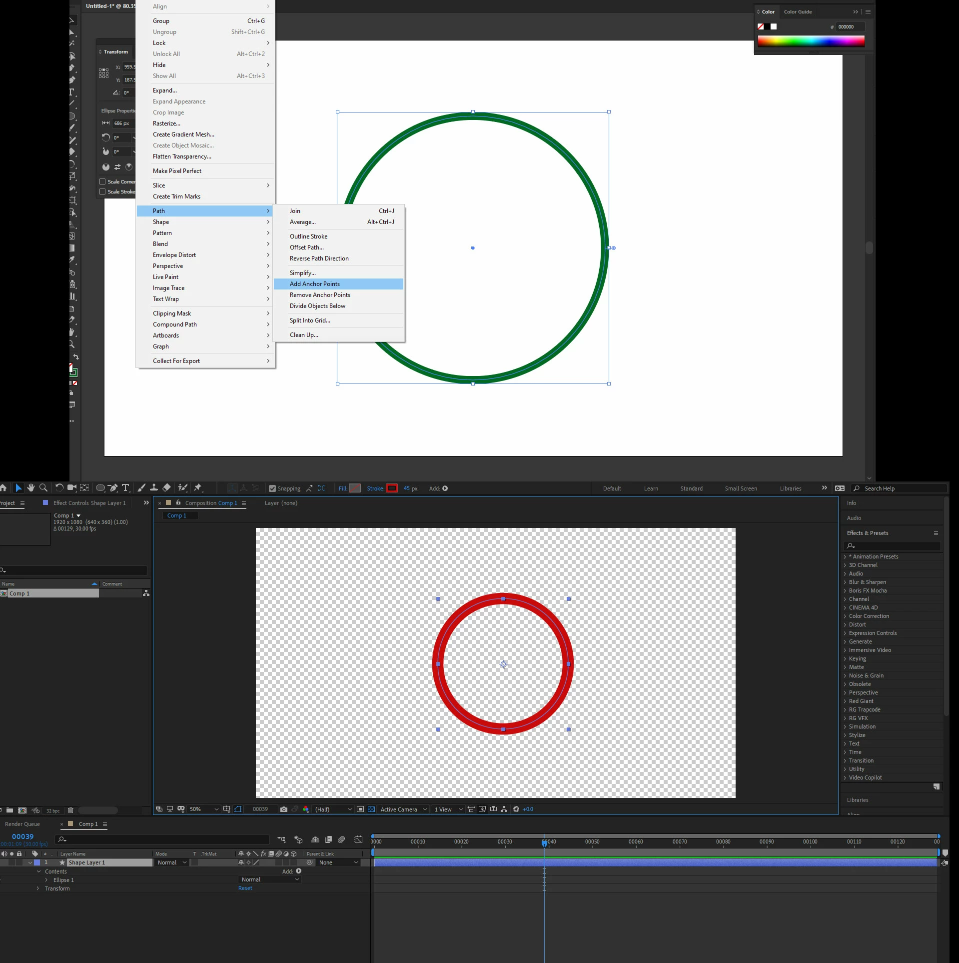 One document is Illustrator and the other is AE, in Illustrator by selecting this command it adds anchor points on the path of the shape evenly spaced. Is there a way to do it in AE?
