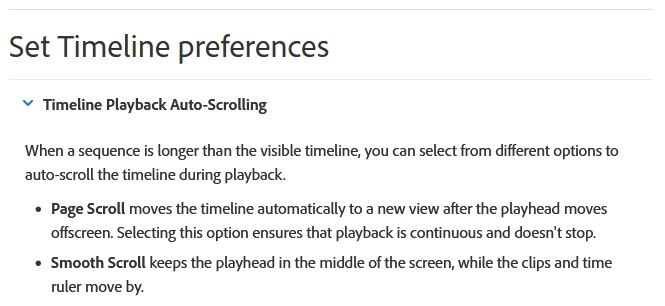So, is there an option to have the timeline window follow the playhead, either smoothly or by paging? Similar to this Premiere Pro setting: