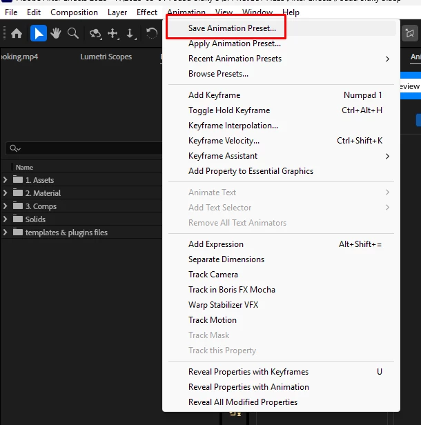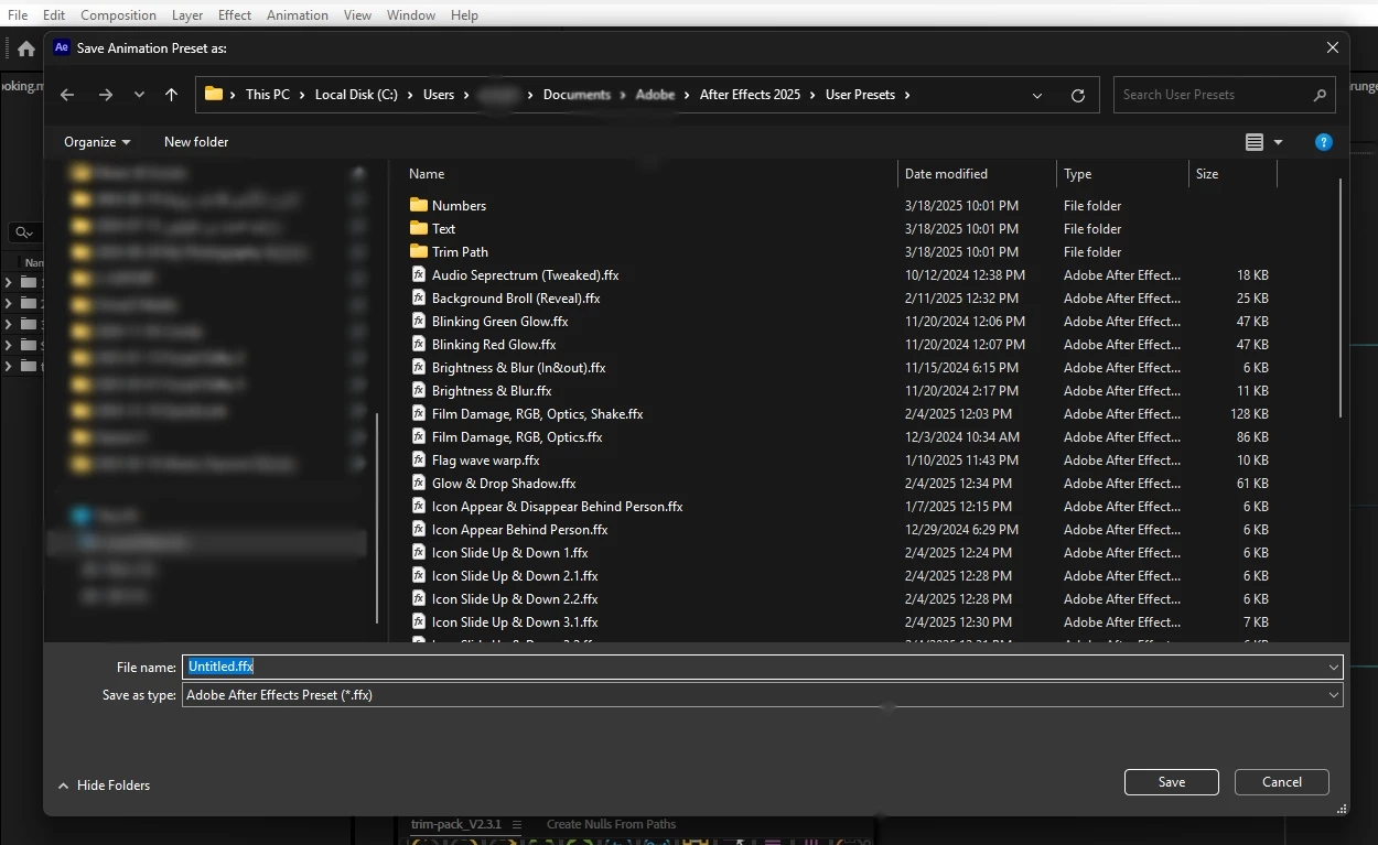 Why in After Effects there is no option for selecting a preset type when saving a preset like Premiere Pro.