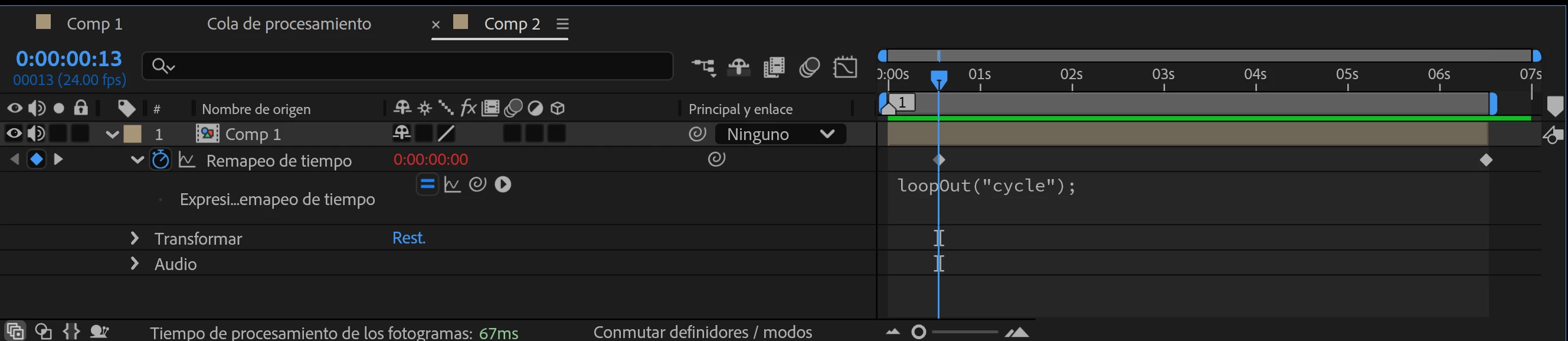 I'm running into an issue with this property. I'm sure this is an easy fix but I don't really understand how it works. I have a composition and I want to loop part of it, from about 2 seconds in. I applied Time Remapping, added the keyframes to the parts I want to loop and used the loopOut expression, but this only seems to delay the first frame and then squeeze the timing of the whole composition into the sections marked by the keyframes. What is the right way to do this?