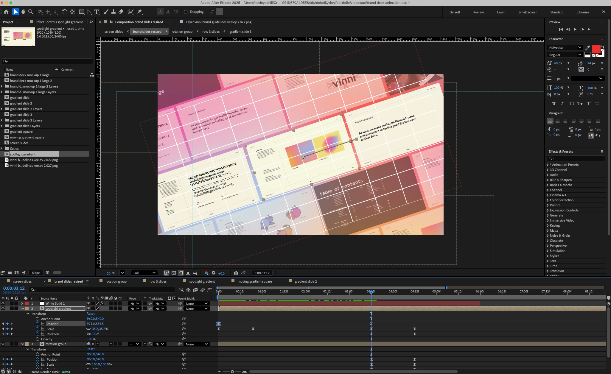 I’ve spent the past few hours trying to troubleshoot an issue where my position keyframes keep bouncing back and forth on one specific slide, and I can’t pinpoint the cause. The issue is with the spotlight gradient composition moving from the first keyframe to the second. I’ve already confirmed that all keyframe interpolation is set to linear and checked for any hidden bezier handles that might be affecting the motion path. I've checked the main comp panel as well as the value graph. I’ve deleted and rebuilt the keyframes multiple times, restarted both the software and my computer, and even updated the program, but the problem persists. None of the other keyframes are doing this, so I’m completely stumped at this point—has anyone run into this before or know what might be causing it? Maybe I'm not looking closely enough? Let me know if there are more helpful images I can attach. Thanks!