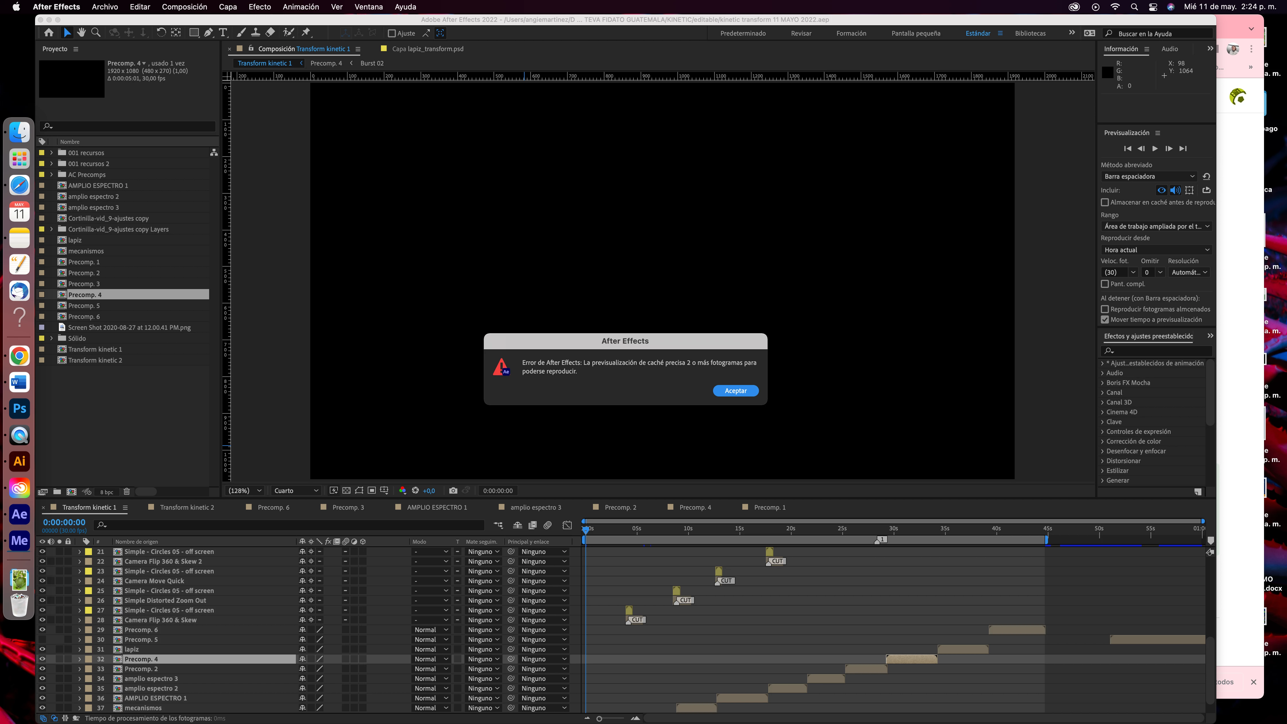 La previsualización de caché precisa 2 o más fotogramas para poderse reproducir