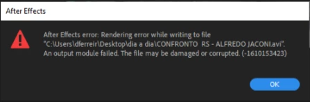 I'm trying to render in After Effects 2023 with the Lagarith LossLess 1.3.27 codec, and it shows this error.