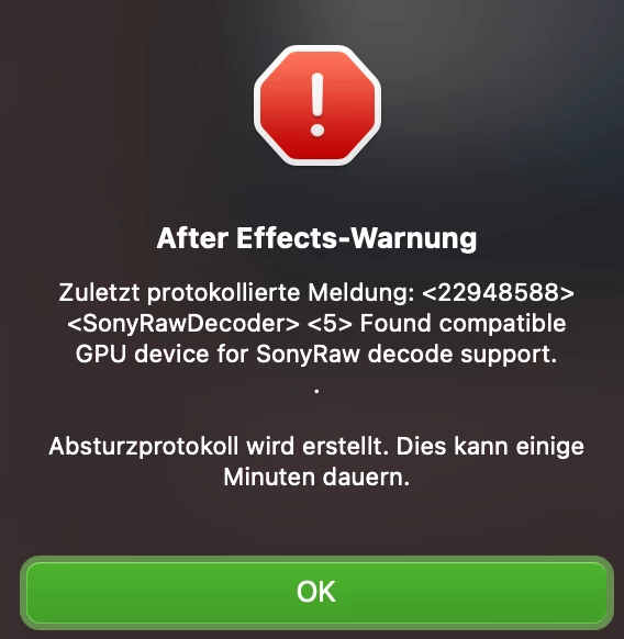 I have the M1 Macbook pro and I have installed the After Effects beta version, and has been using stock effects up until tonight when I decided to install some free plugins. After installing them, I attempted to load AE and it gave me the error message "Last log message was: <29403> <SonyRawDecoder> <5> Found compatible GPU device for SonyRaw decode support."   I've tried deleting all plugins & scripts I've downloaded, and even uninstalled and reinstalled AE. Still getting the same message. Please help as I've got multiple projects I need to finish ASAP and this is nothing other than horribly inconveinient.