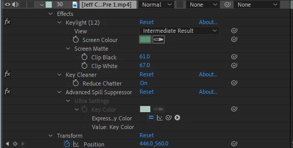 I've created a layer which is a video that has the keylight effect, as well as position key frames. I can see a partial outline of the layer, which I cannot get rid of, and shows up in an exported file as well.
