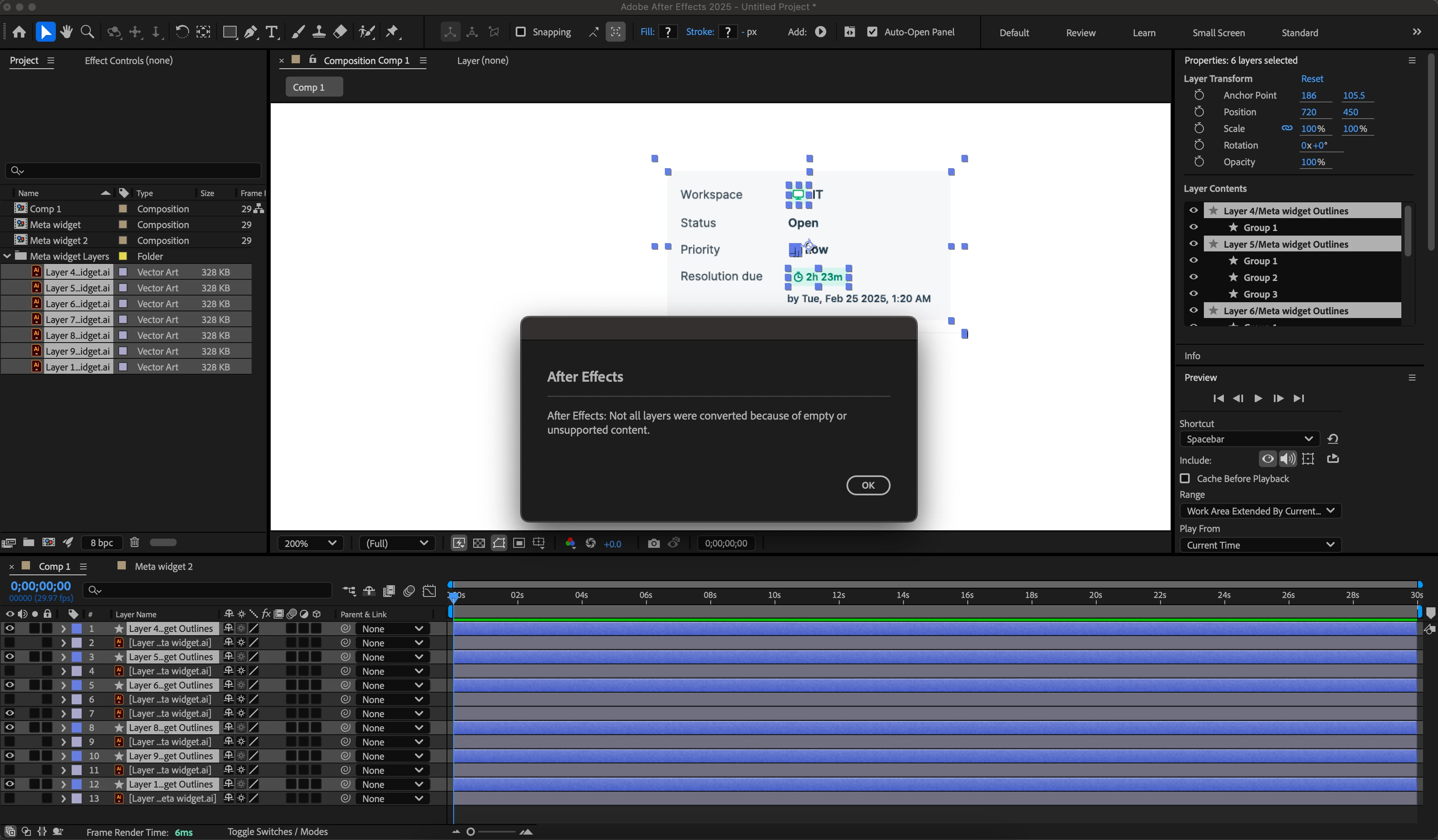 I have tried everything I could and it's not helping. Also when I try to create shapes from Illustrator layers, getting the following error: