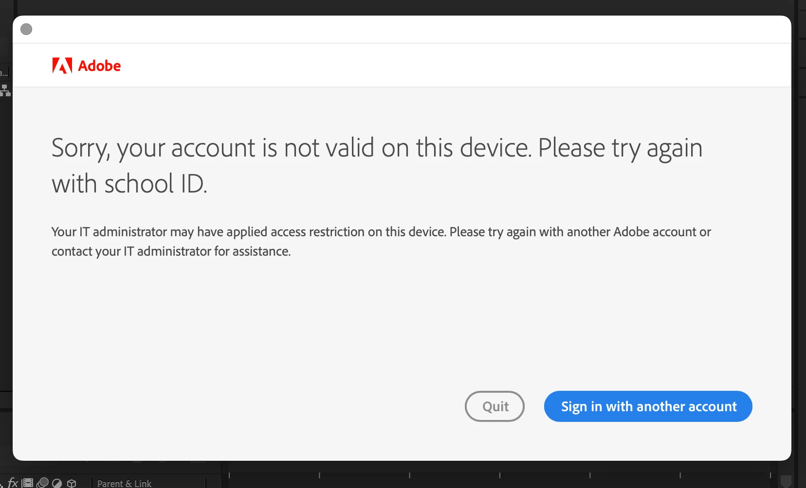 milomacb19ParticipantForum|Forum|2 years agoOctober 16, 2023QuestionLog in problemsForum|Forum|2 years agoOctober 16, 20231 reply134 viewsHi. i recently bought a personal subscribtion after my school one ended, but this message won't go away.The program forcefully closes regardless of which option I clickTroubleshooting