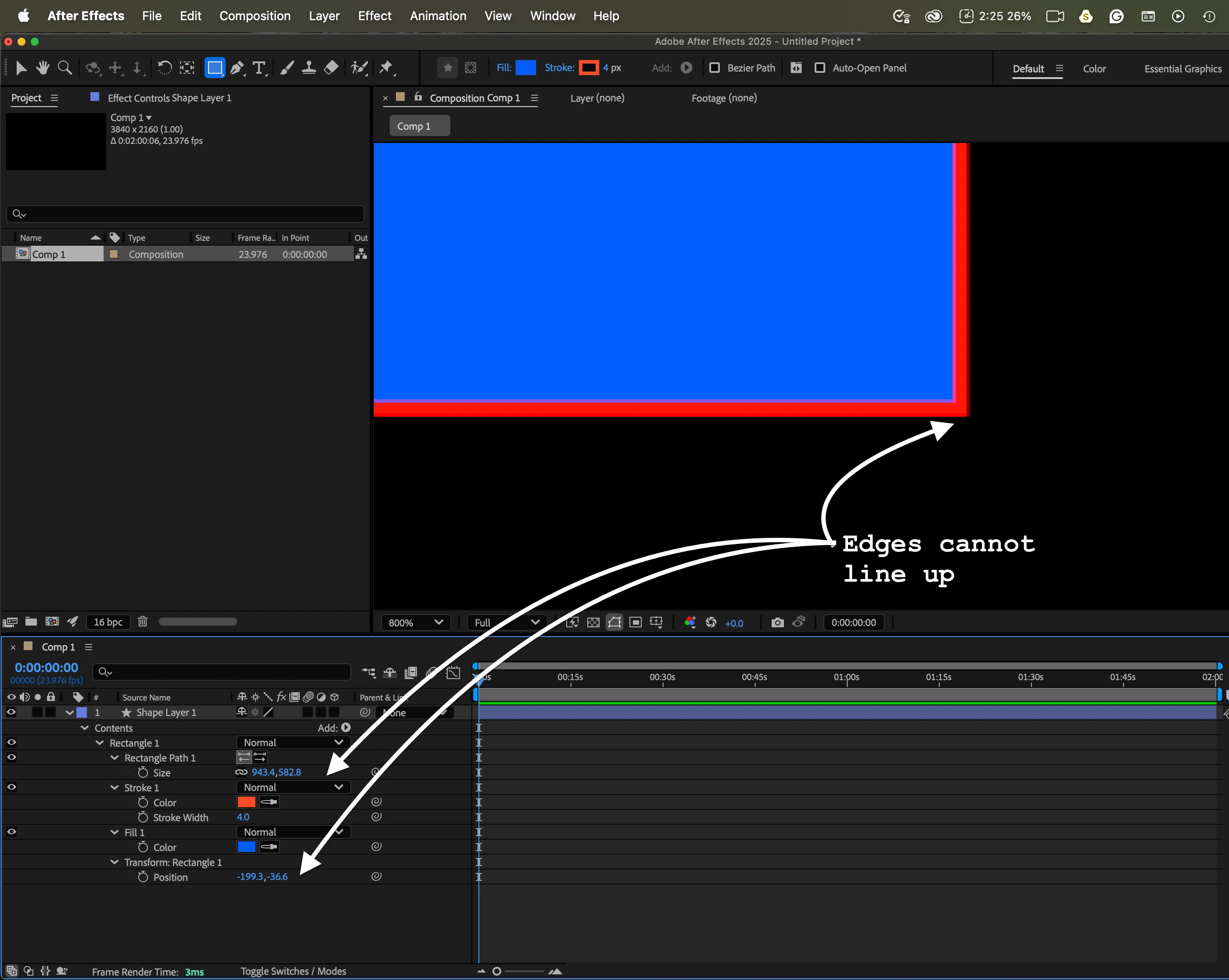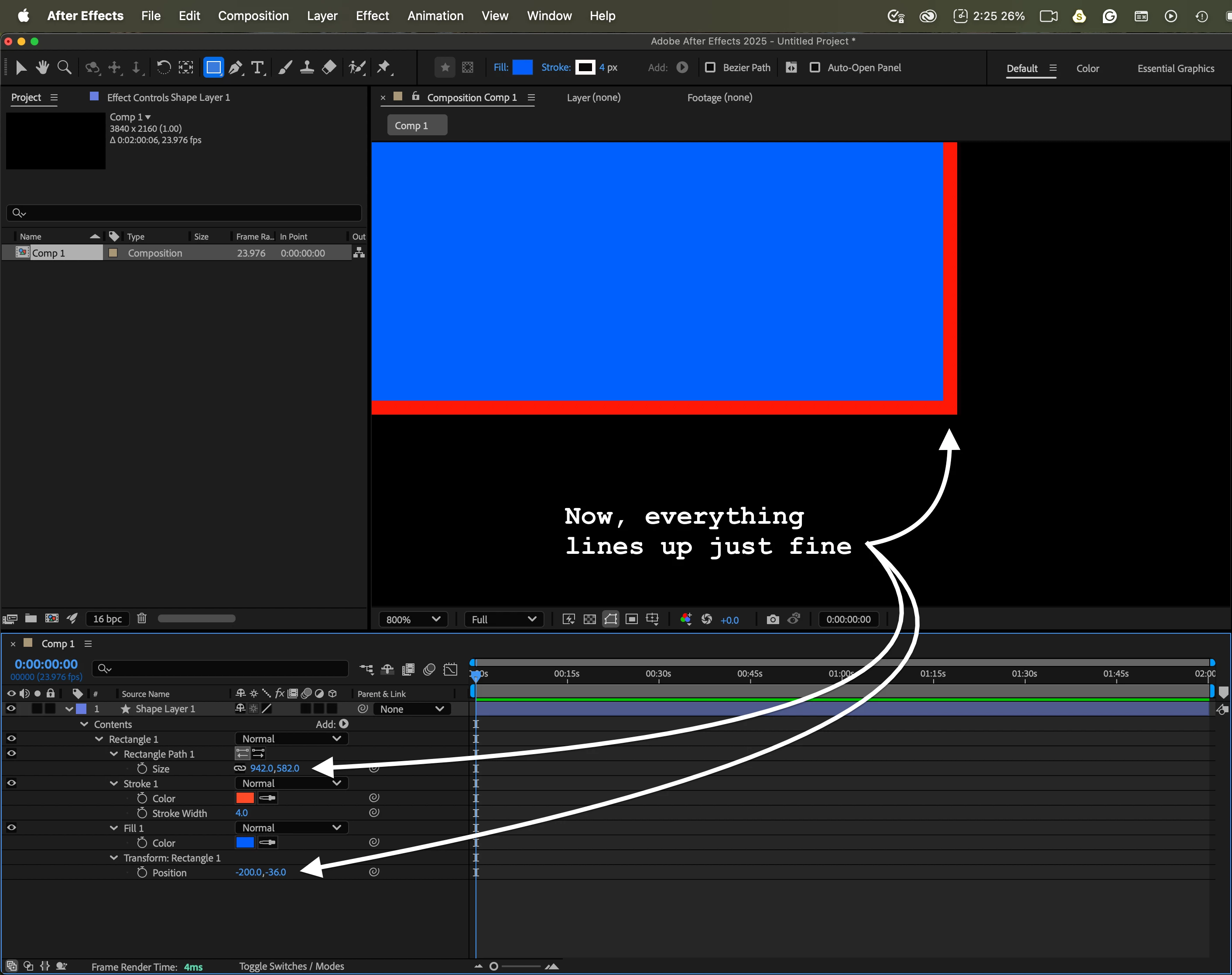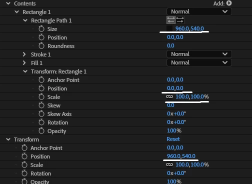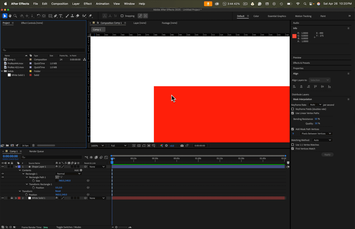 and positioned a 960x540 red-colored shape layer exactly at the center.