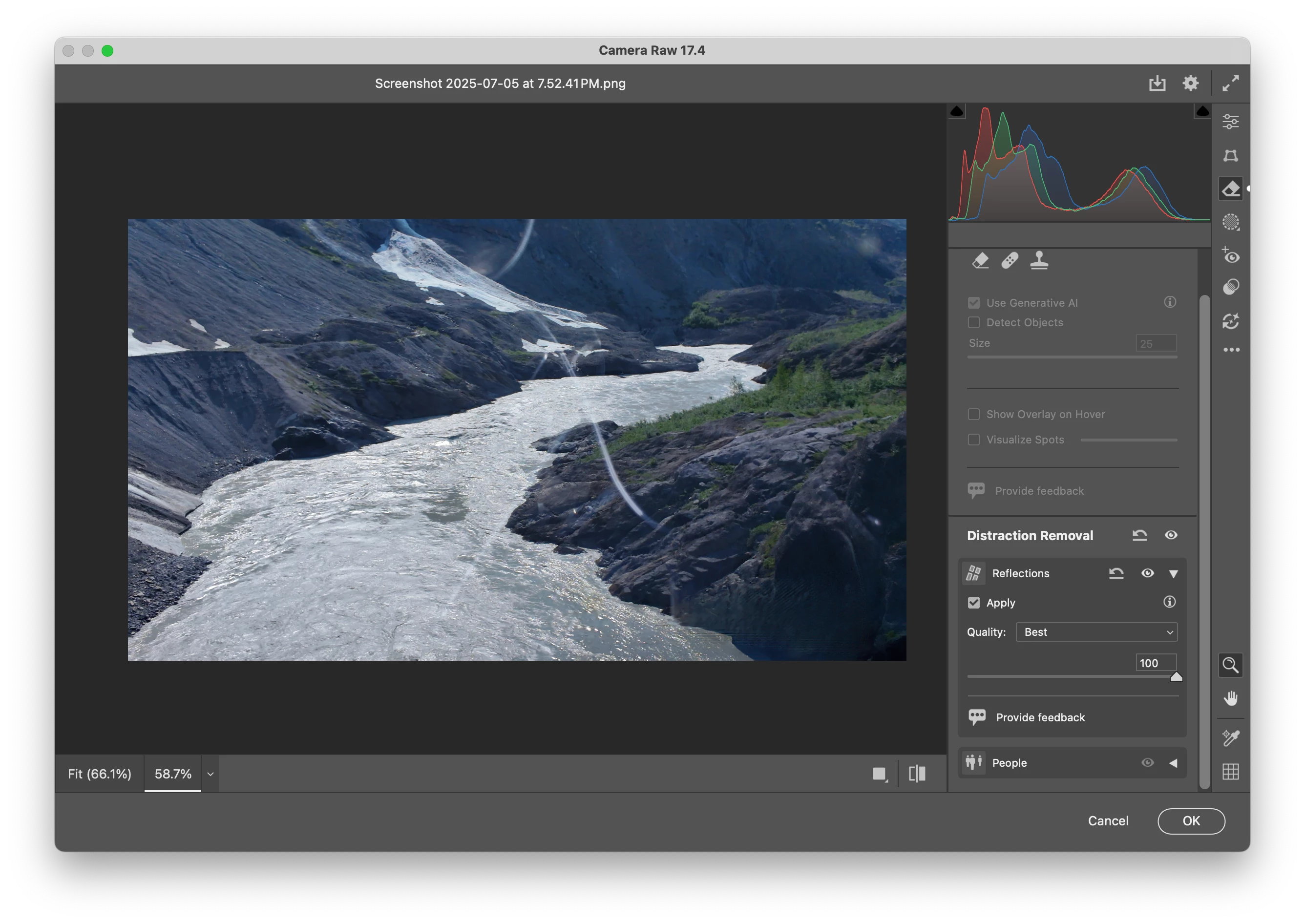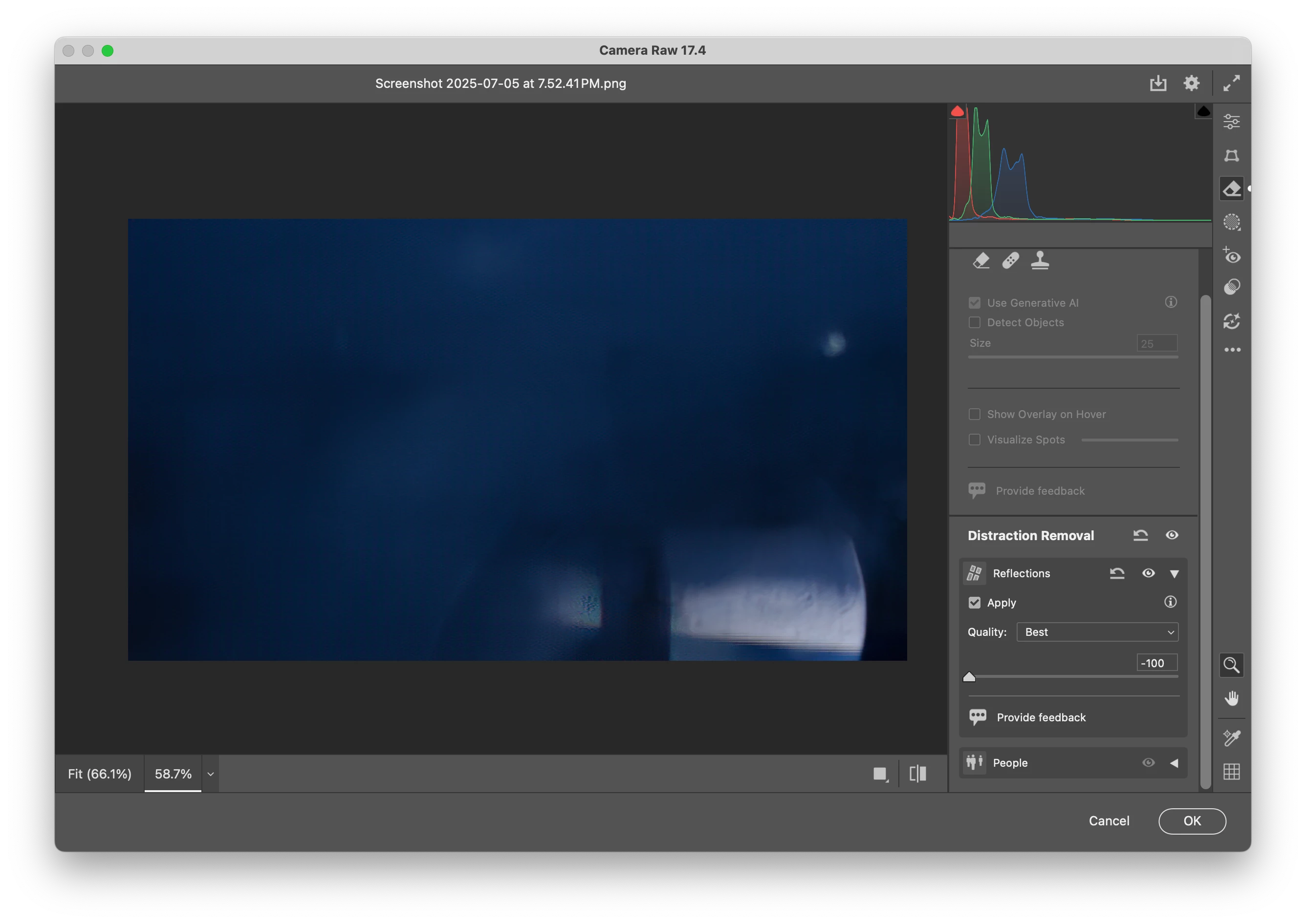 After Effects doesn't have reflection removal, but Adobe Camera Raw does (Photoshop User Guide > Adobe Camera Raw > Remove reflections).