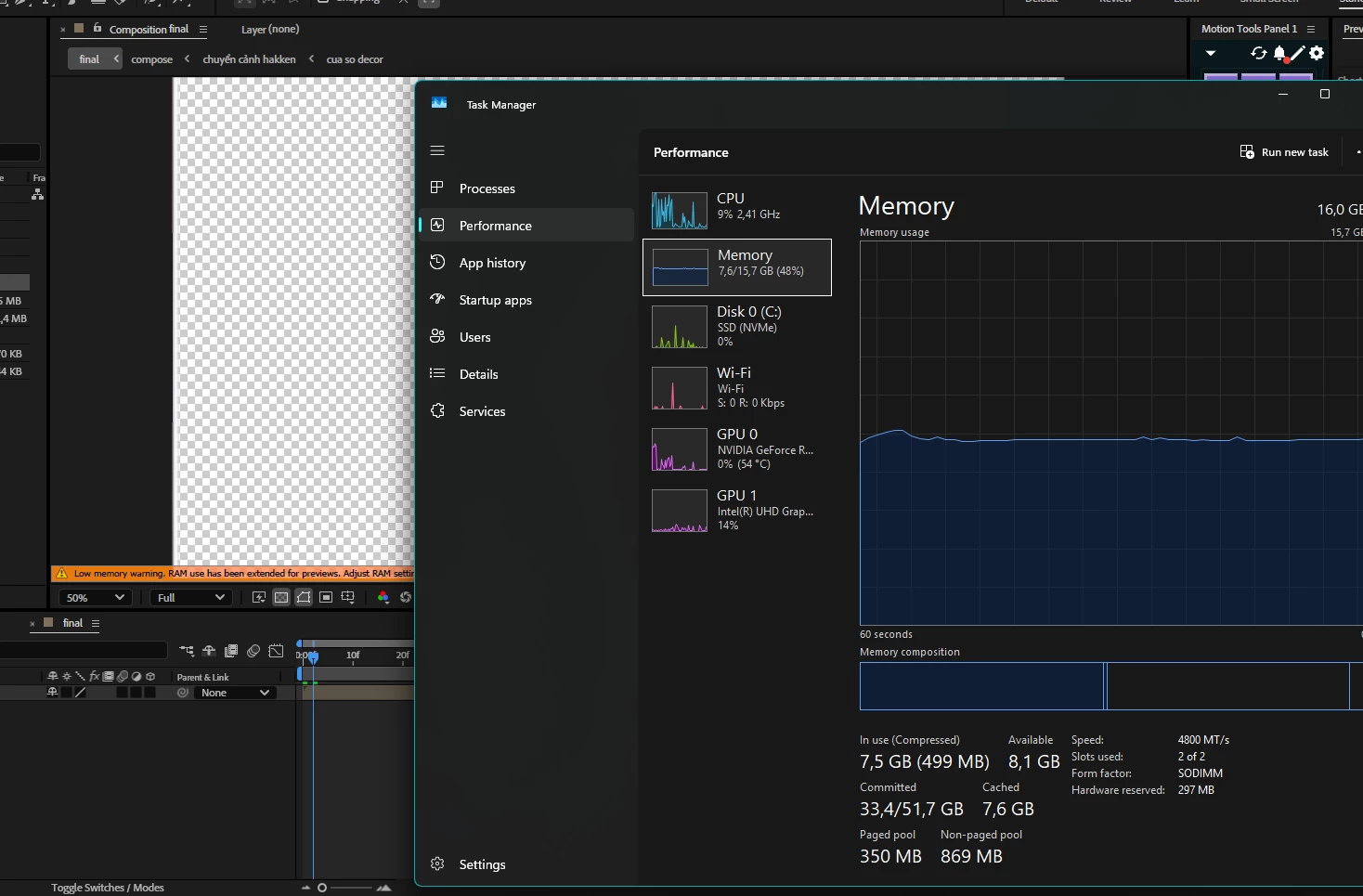 The adobe after effect said that i have low memory when its not even trying to use my ram what the hell, when i hit play its just repeat and stuck, i tried all the tutorial, purge, locate more cache, everything but nothing changed