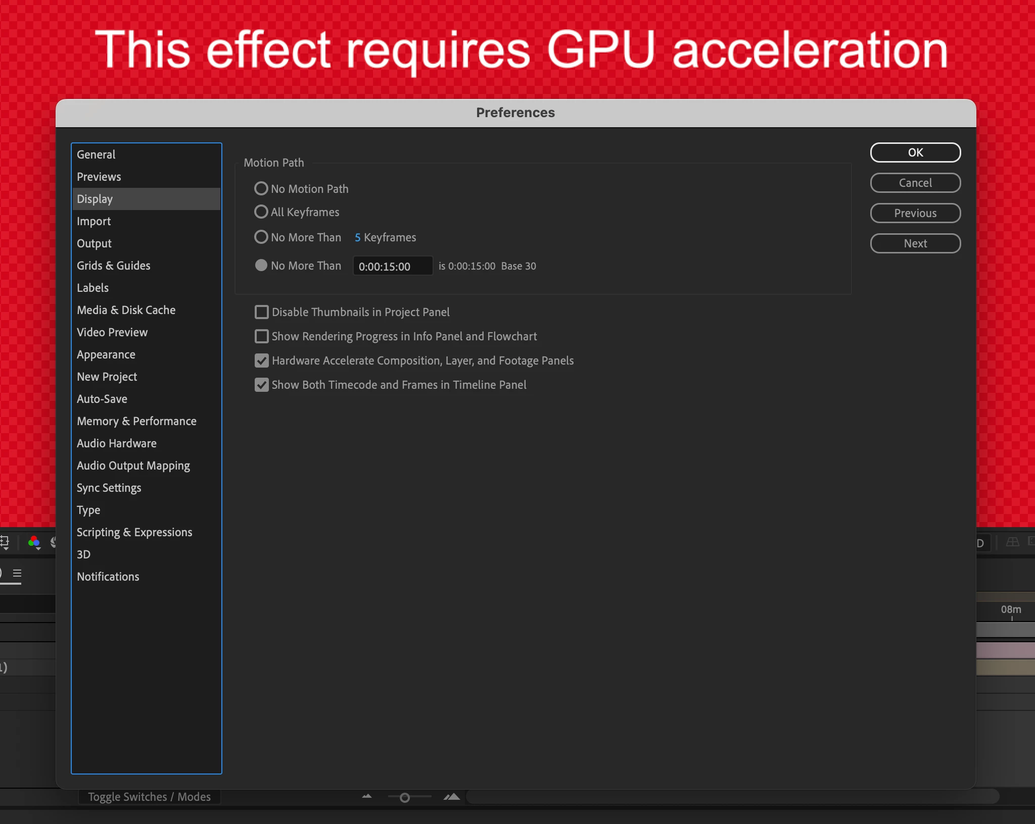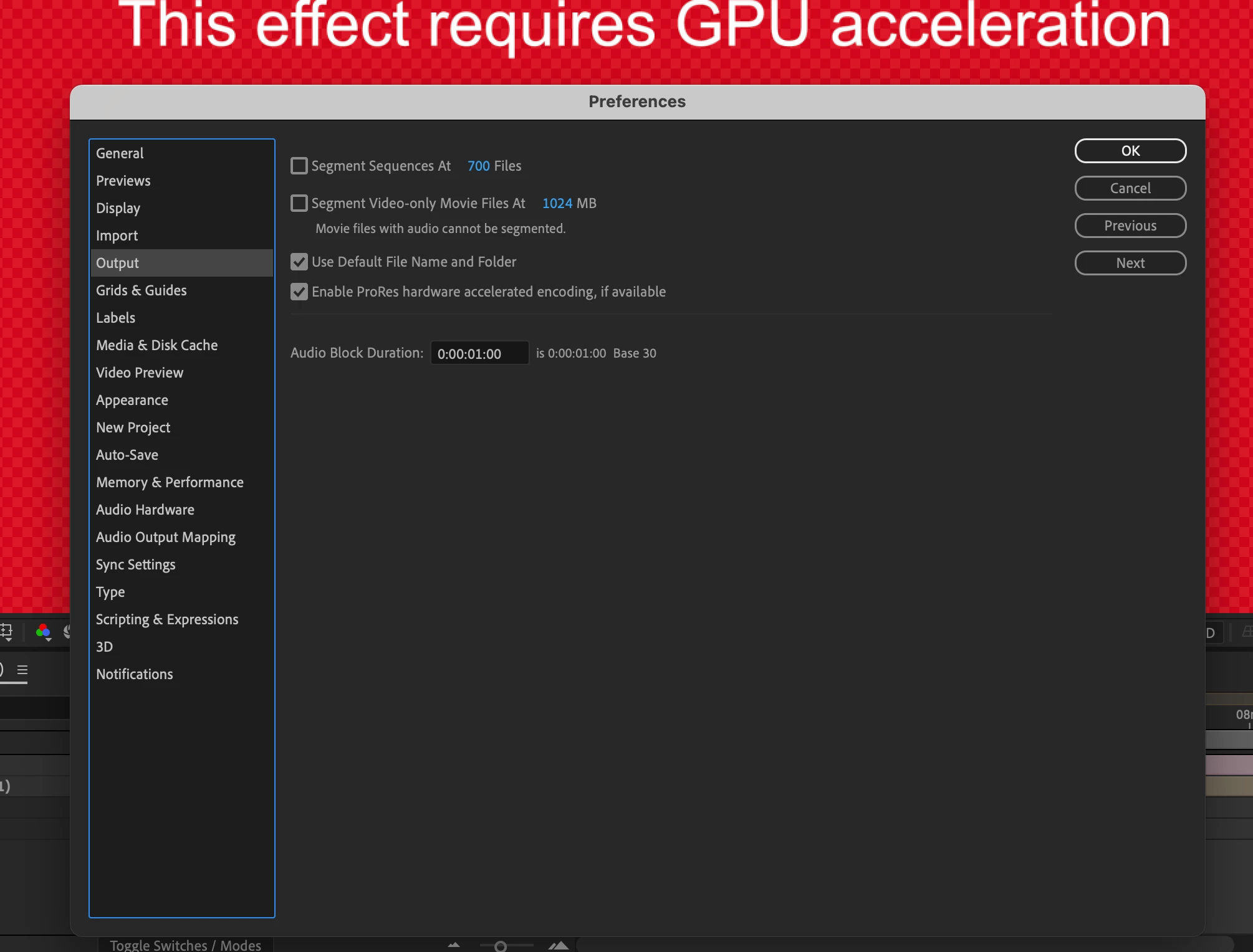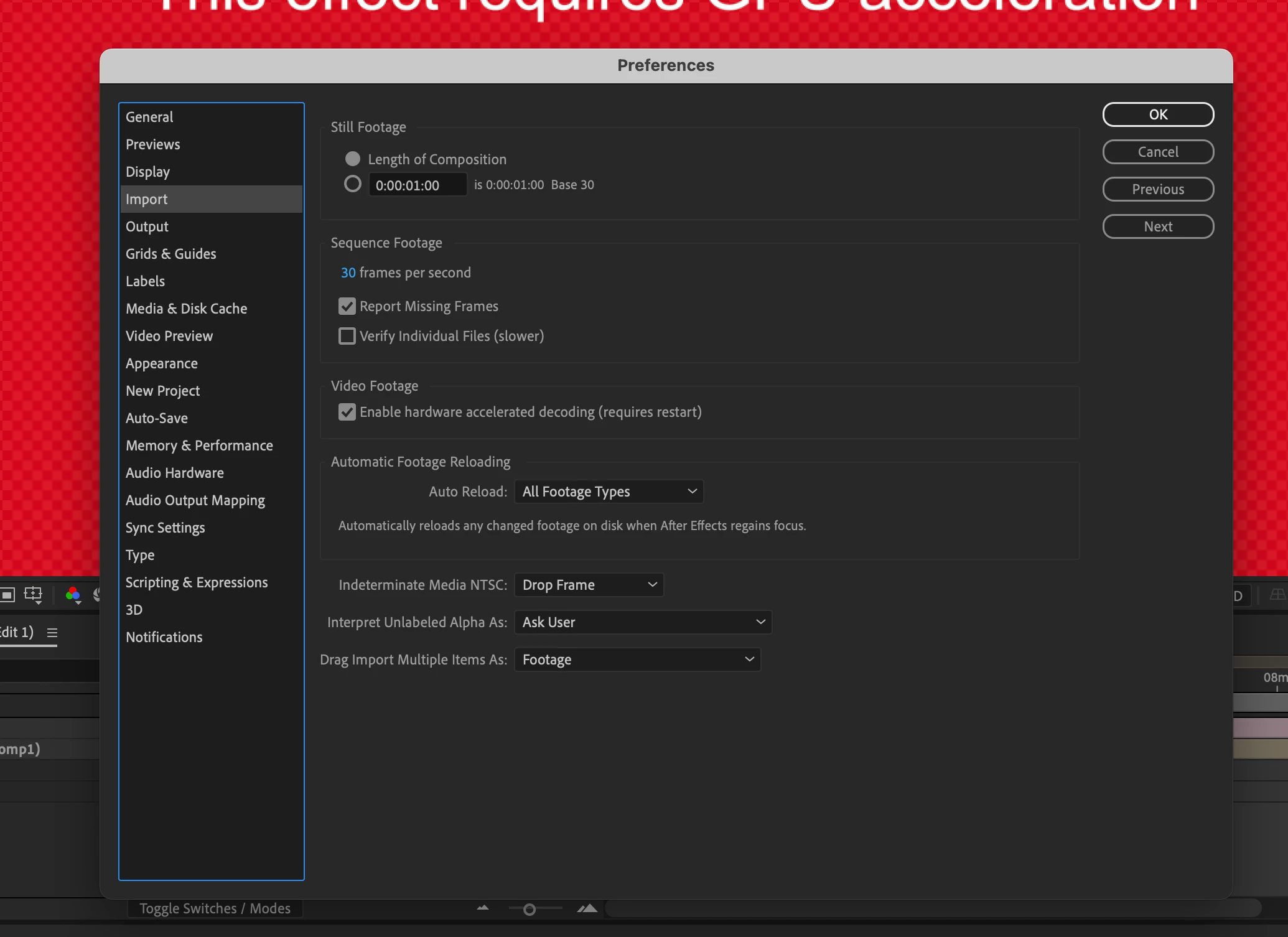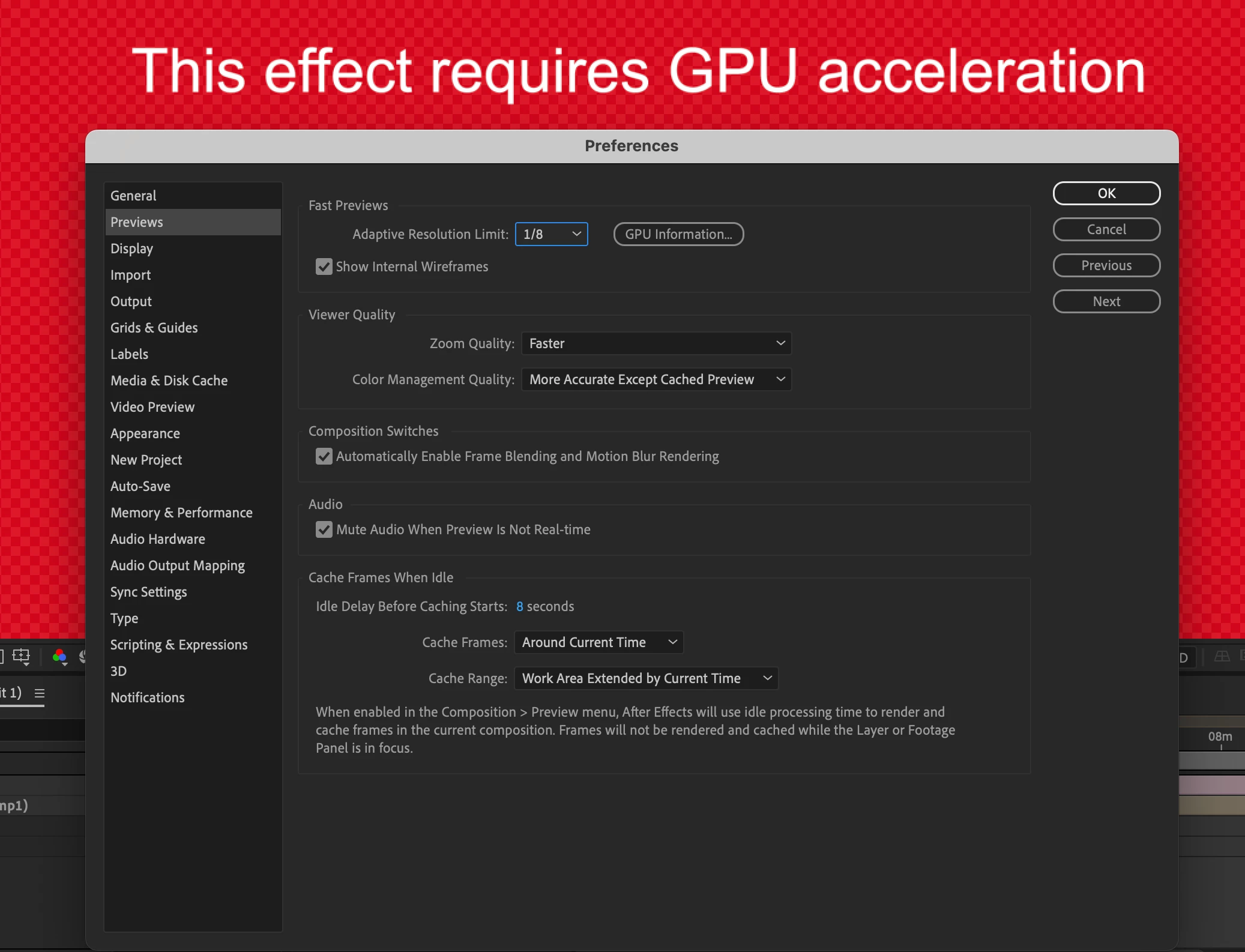 I am trying to work in a 360 environment with 8K footage converted from 11K produced by the Titan insta360. I keep getting the red warning over the screen when using VR converter in After effects that says "This effect requires GPU acceleration." I have all the options in preferences checked for hardware acceleration so I'm not sure what else to do? What amy I doing wrong? Does AE not recognise the on-board GPU's of the M1? Any suggestion would be appriciated! Here are some screen shots of my settings: