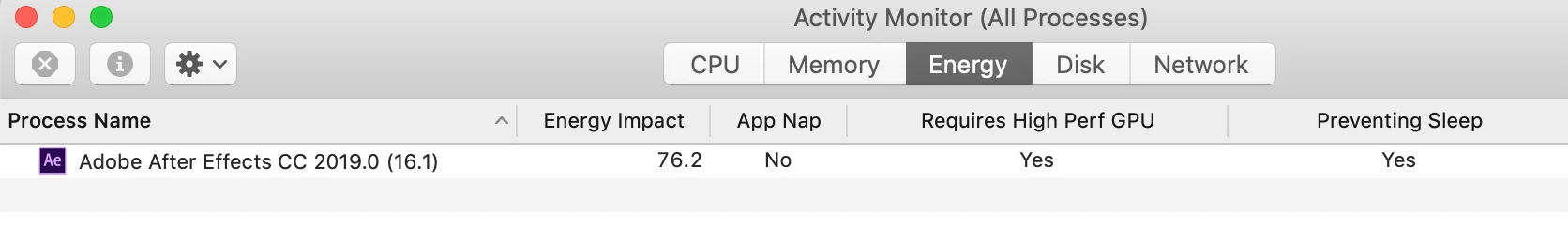 Any ideas? I've never had issues with MacOS throttling background apps before (I just rendered a bunch of 3D assets the other day in a different app without a hiccup), nor have I had issues before with AE killing itself when it's not the centre of attention...which appears to be what's happening now?
