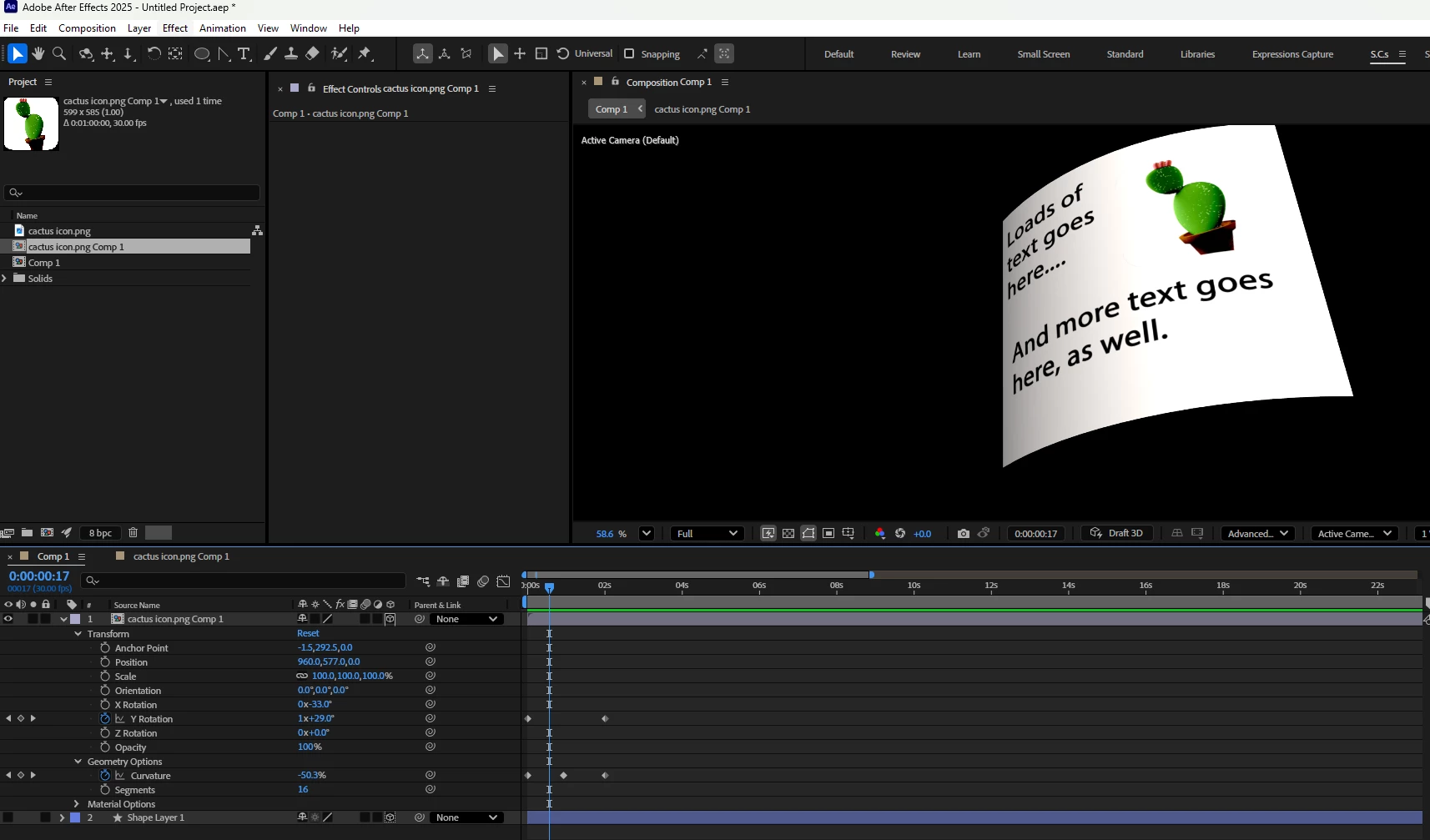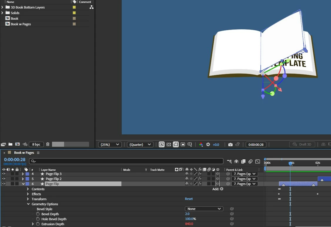 From what I've seen online, all of this seems to be pretty run-of-the-mill. But what I'd REALLY like would be to make it so that these pages could have images on them—for me to be able to create a vector graphic in Illustrator and superimpose that onto the page, so that the vector graphic or image or pre-comp will bend with the page as it's turning.