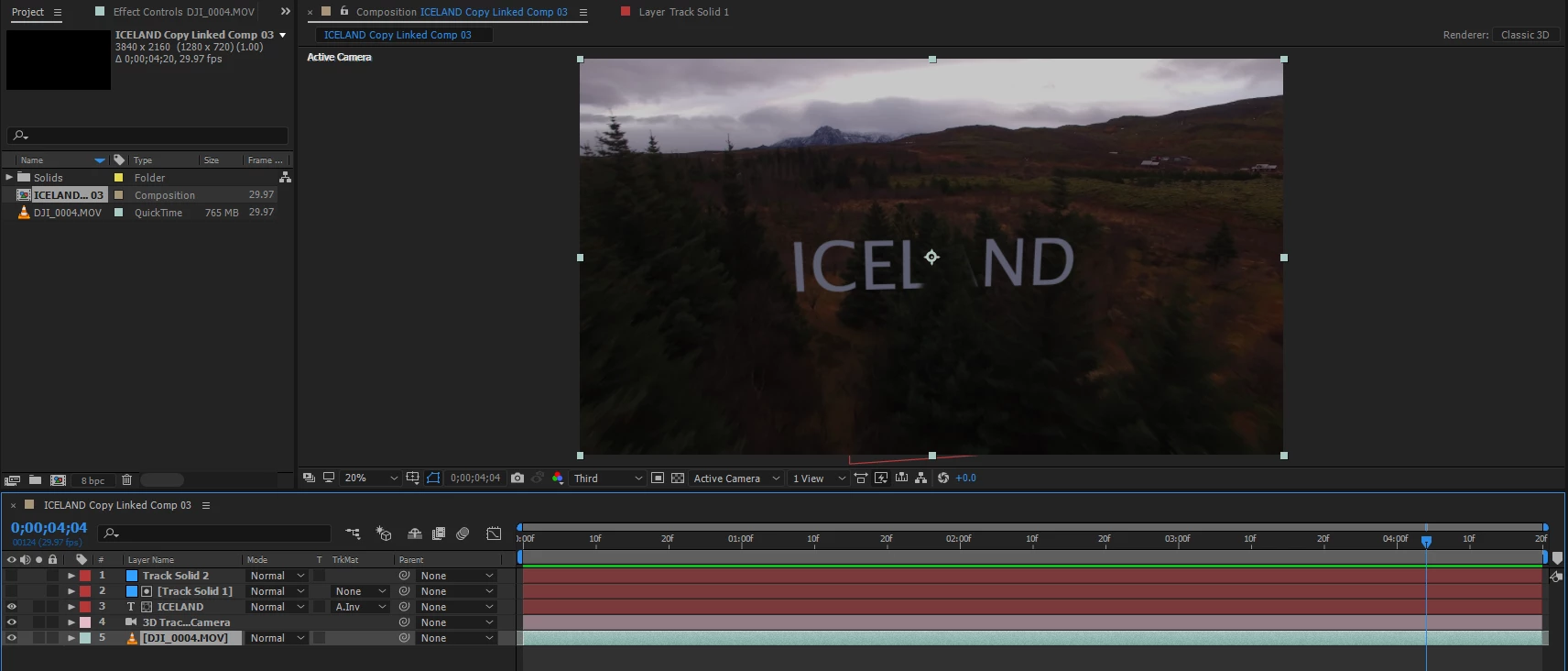 So I have a drone shot traveling backwards over some trees and the word Iceland looks like it is sitting between the trees. The good news is, I was able to get the words to go behind one of the two objects, I just could get it to only go behind one tree at a time. I can even get the track matte to switch between the two objects but never both at the same time.