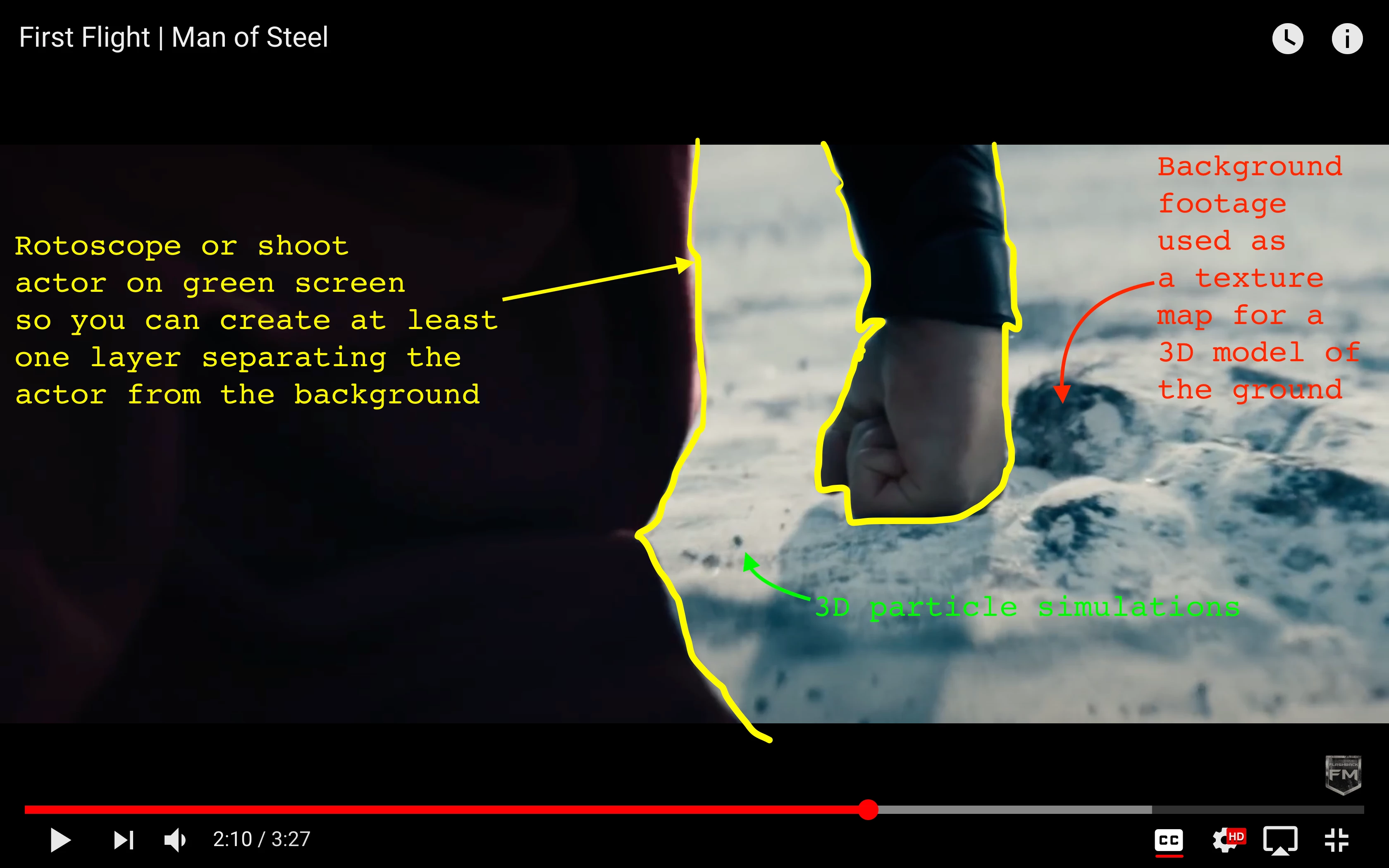 Man of Steel - first flight - dround particles trembling efect recreation.