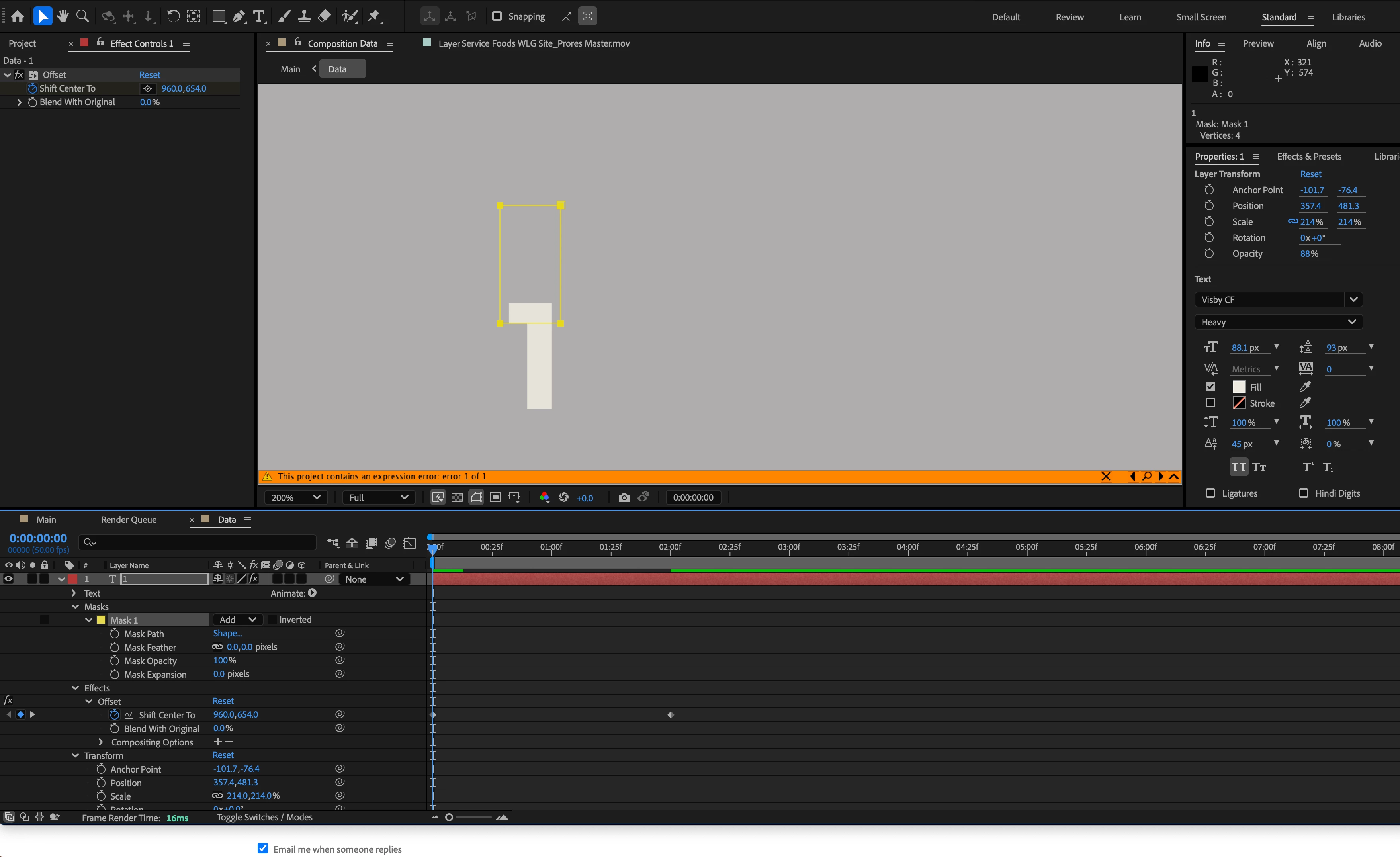 I'm following a tutorial that uses the offset effect so that the text slides up from hiding. But when I reposition my text it still is visible even outside of the bounds of the mask. It seems to match tutorial so I can't figure out why mask isn't working.
