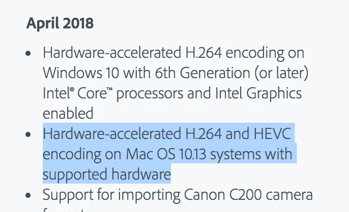 Media Encoder April 2018 - H.264 Hardware Acceleration - which Macs?