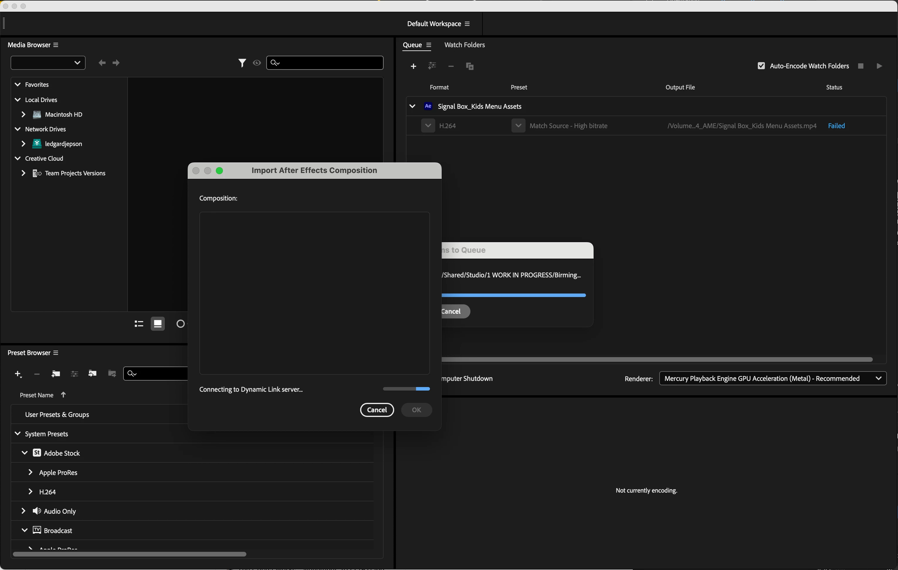 Dynamic link server rarely connects, making Me redundant and having to export in Ae which takes 5x as long.