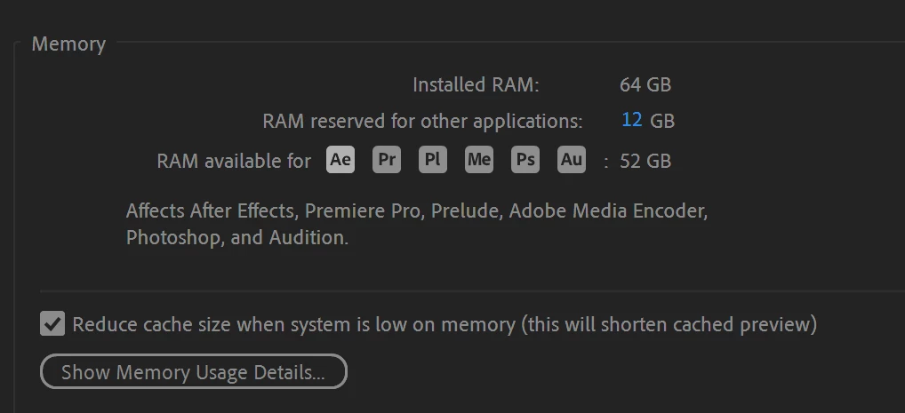 But any time you start warp stabilizer, render something, etc. you can clearly watch this limit to be ignored and the usage going up again until it reaches almost the upper ceiling and cause all kinds of memory-related errors then.
