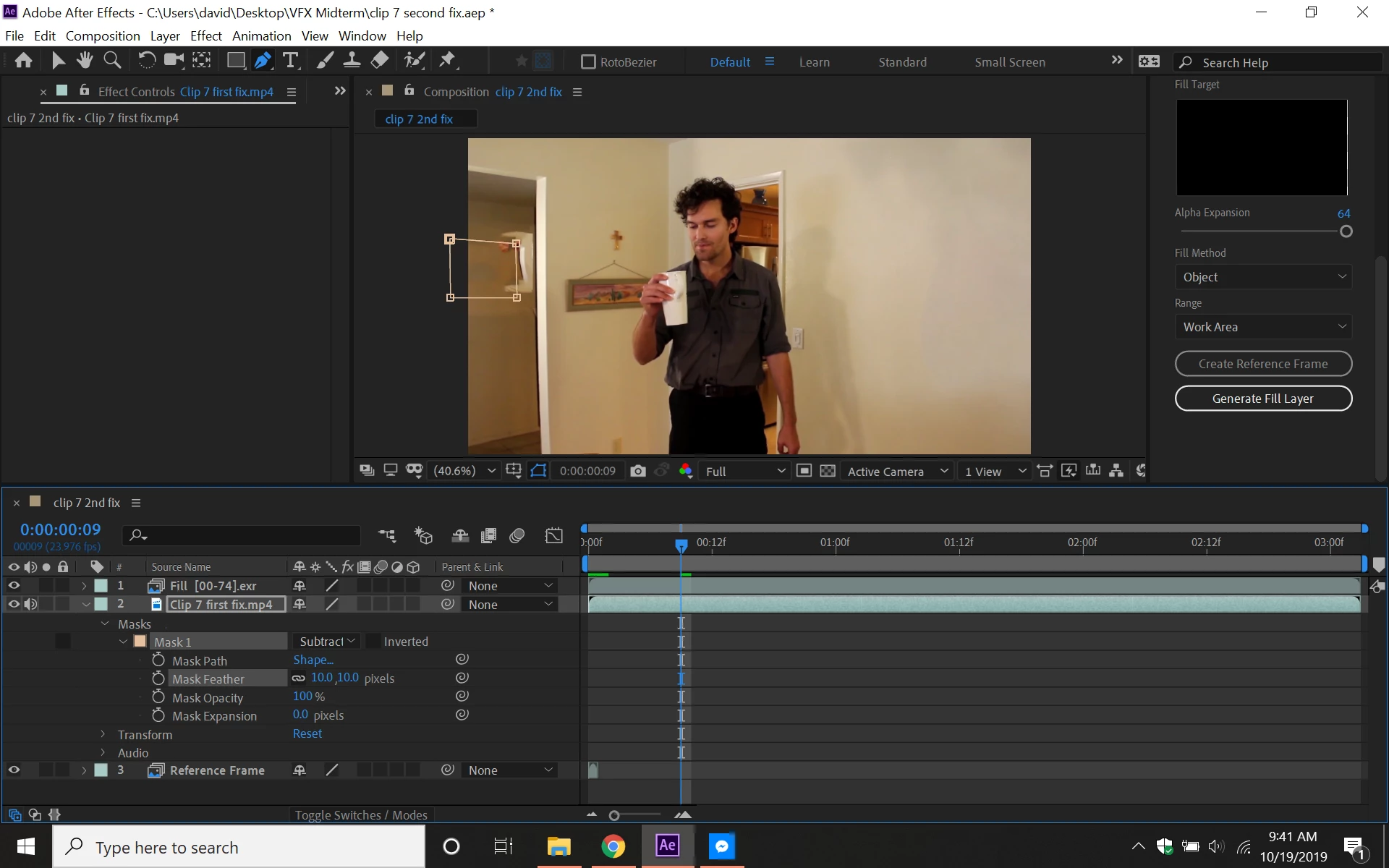 This looks suspiciously like someone the workflow of someone that did not spend any time with the User Guide or the Adobe tutorials on using CAF. The tool will do a good job but only if you use the tool correctly. For something as simple as fixing a spot on a wall I would probably use motion tracking or corner pin tracking or even the clone tool. It would probably be a lot faster. But then, again, I don't know what the original shot looks like or what you are trying to fix.