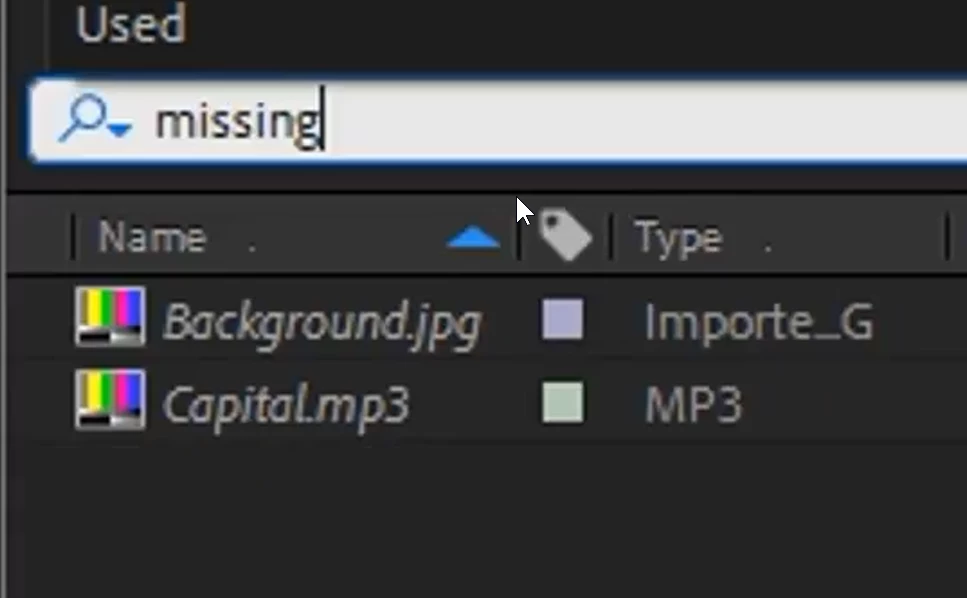 This video shows typing "missing" word in the search box can filter all missing files. But it does not work to me. [Time 1.23]