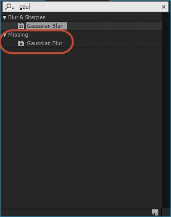 I'm a newbie in After Effects. When I open an AE project, I got a warning regarding a Gaussian Blur missing.