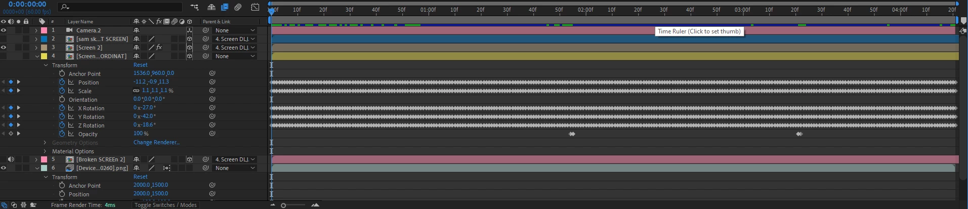 So I have prefabricated a mockup of laptop as a sequence. All the movements that you see in the video were made by someone. What I`m trying to make - Laptop spins with use of time remapping and it`s cool.What is not cool that Screen video and Glare on screen obviously is time remapped as well.