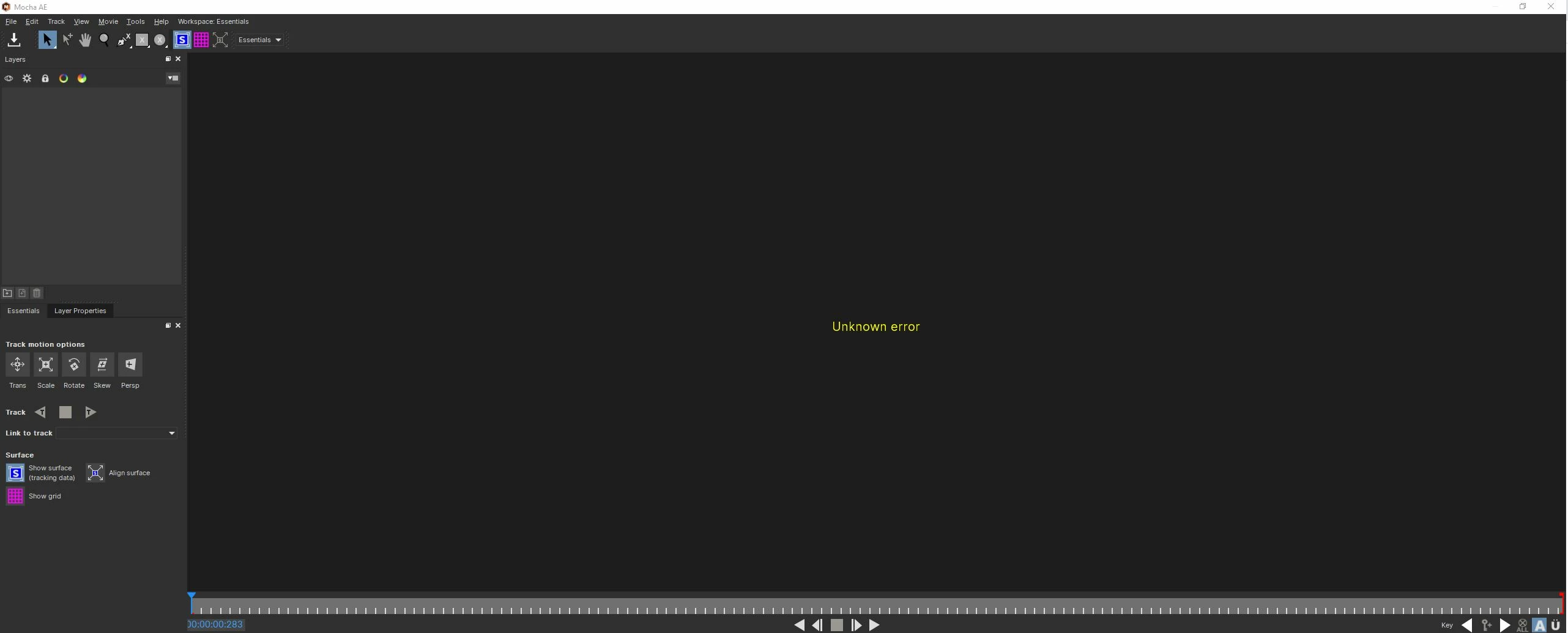 Mocha AE "Unknown Error" message when opening from After Effects.
