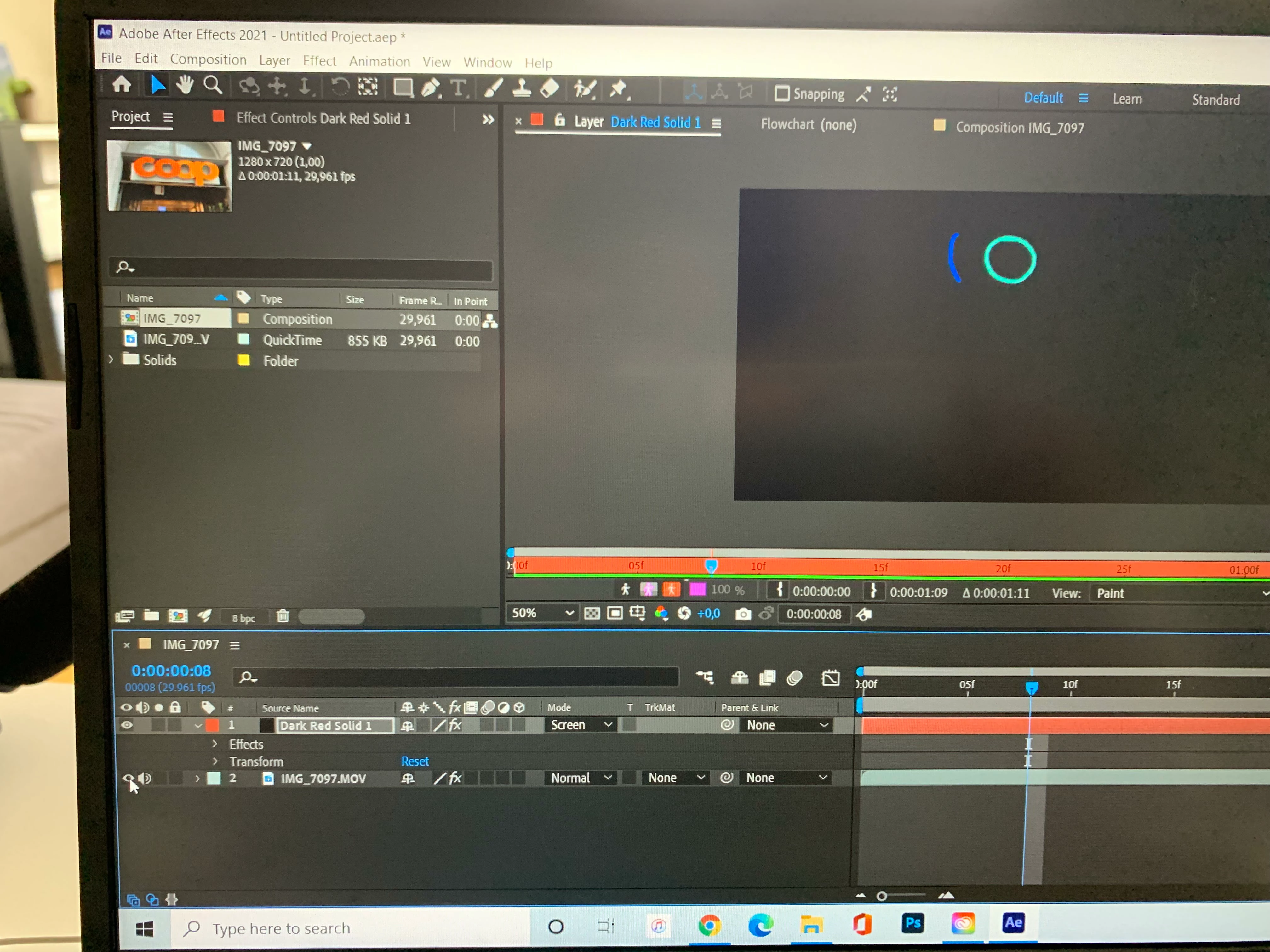 I am using masking/Roto/Brush for glow effect. However, after coping the effects(brushes) from main clip to the solid (and deleting/hiding from the main clip). When I switch the mode to screen. The glow effect is happening but the screen is not appearing. It is still pitch black with effects. I tried various manipulation but still nothing is working. Stuck in this. Pleas help.