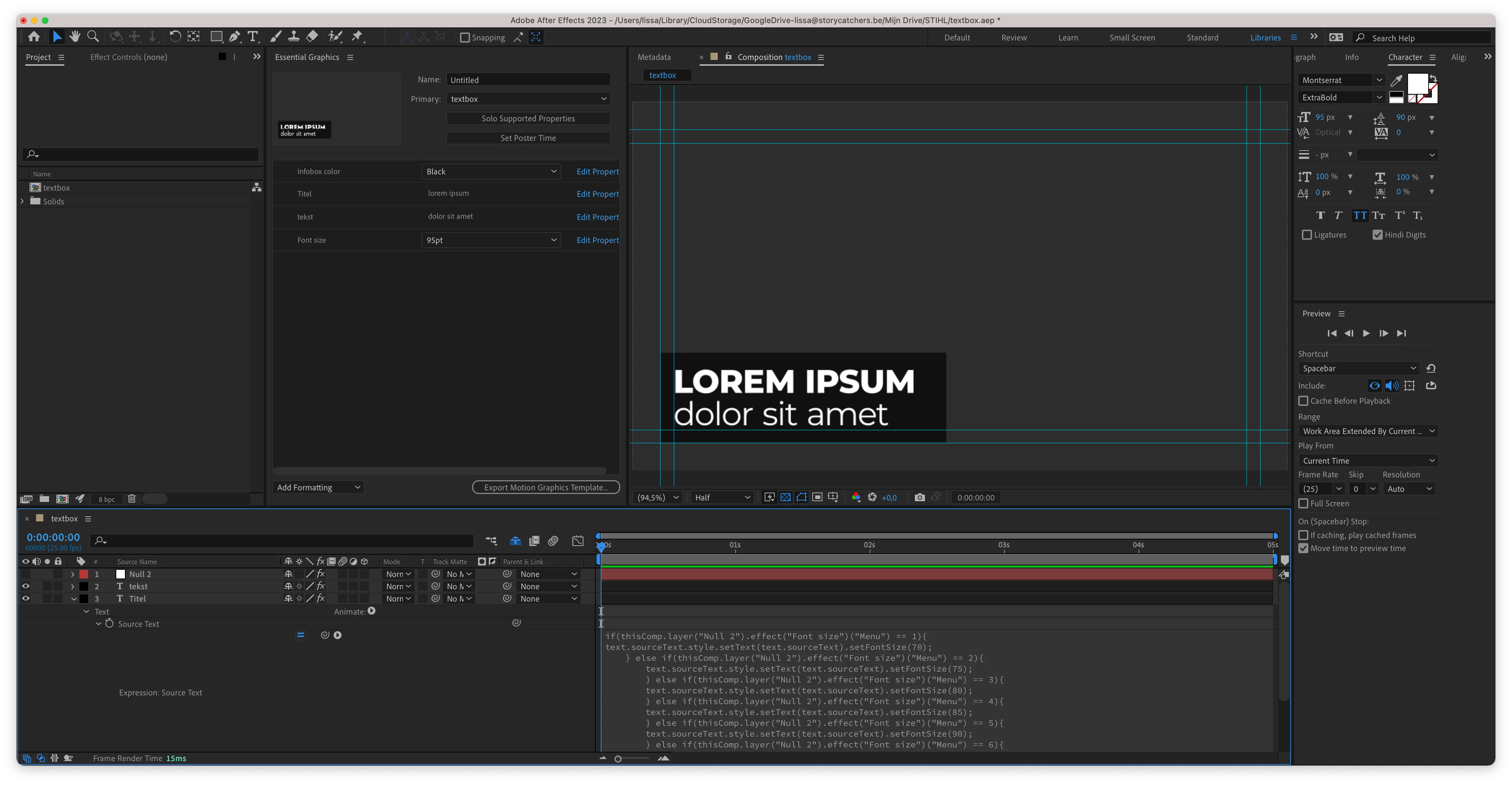 Hi, I've been trying to make this textbox responsive but I'm stuck. I am very new to mogrts, the essential graphic panel and expressions.