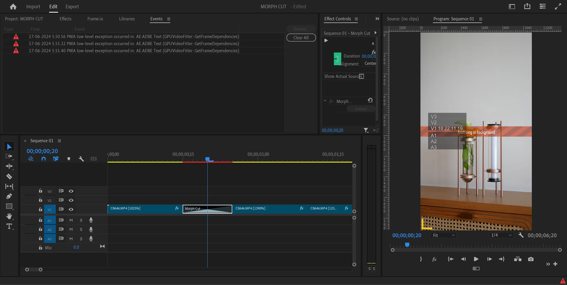 Morph Cut displaying error