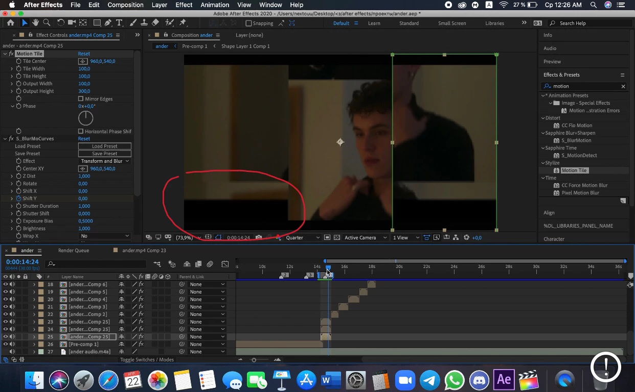 Lll371ParticipantForum|Forum|5 years agoApril 21, 2020QuestionMotion Tile isn’t workingForum|Forum|5 years agoApril 21, 20201 reply167 viewsFor the first 2 seconds there is Motion Tile effect on the video, but then it dissapears (you can see it on the screenshots). Is there any way to fix it? I tried CC RepeTile too, and it doesn't work either. It's AE 2020.How toError or problem