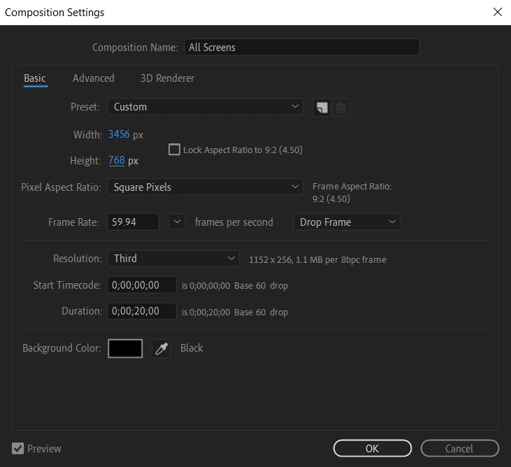 I need to get the dimensions right before working because my animations is going to animate over those 3 screens and i feel if I mess up the dimensions, it's not going to output correctly.