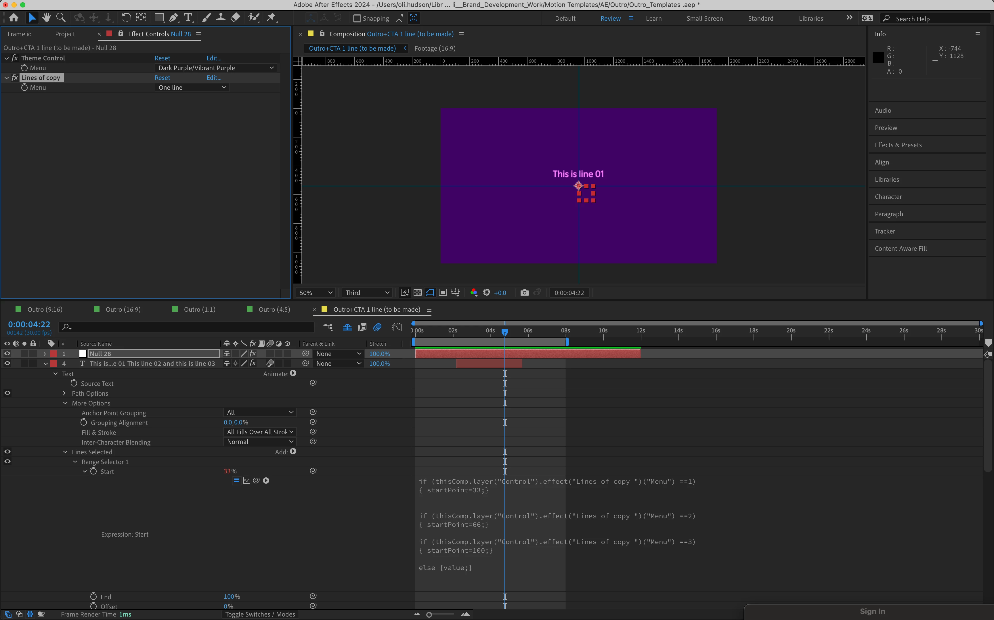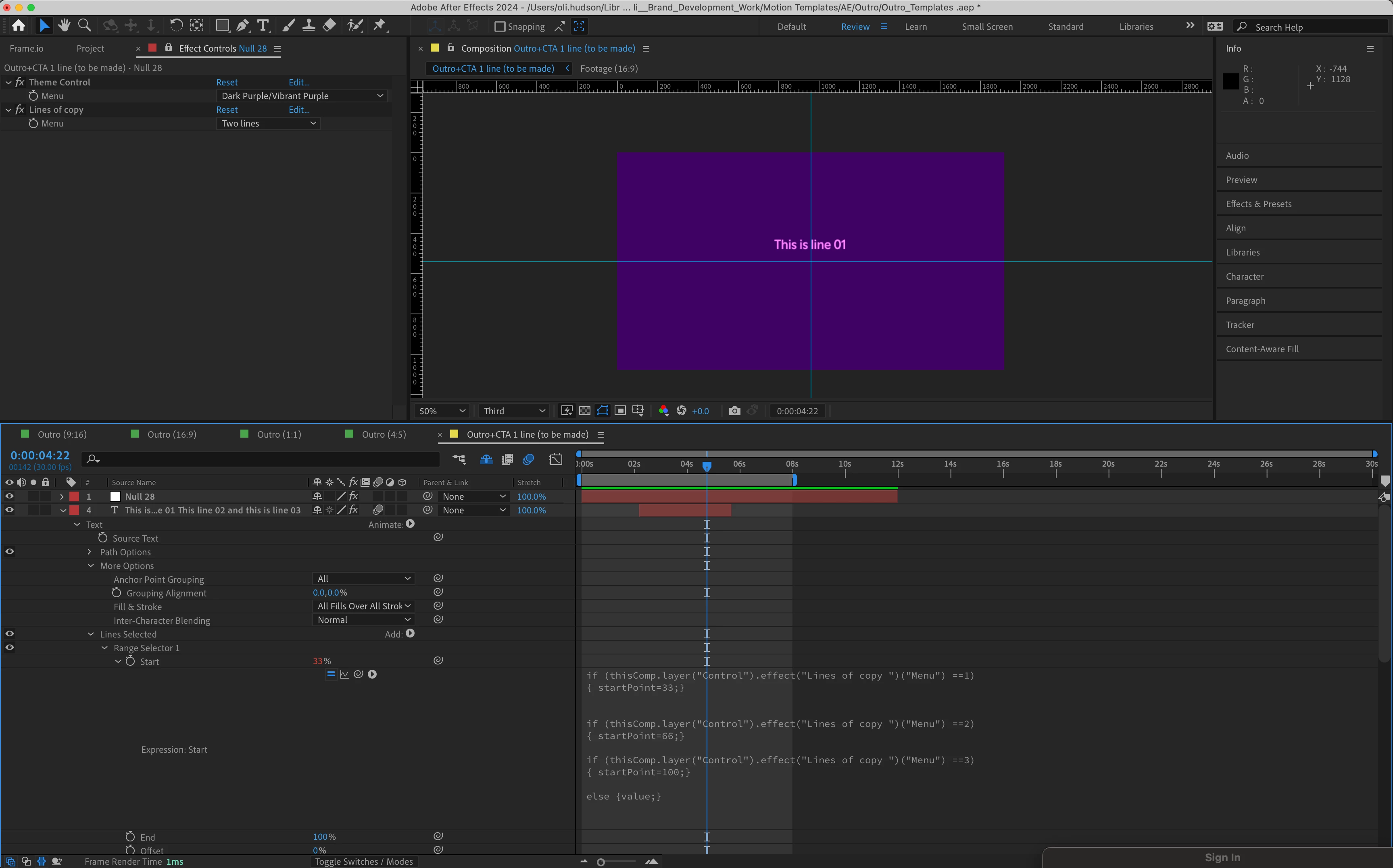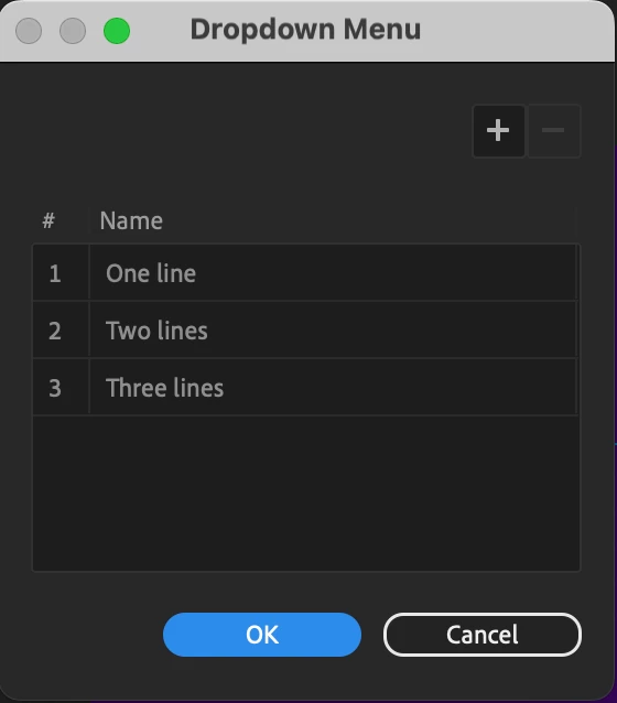 I'm trying to create a template for animated type where each line comes in from opposite direction and a drop down which gives the user the option for 1, 2 or 3 lines of type.