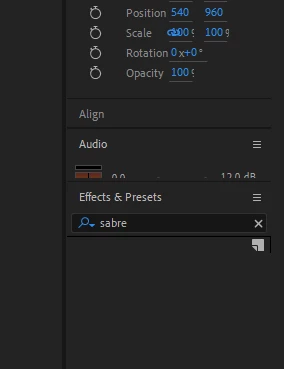 Estou tentando recplicar um efeito de um curso que comprei, no vídeo o instrutor claramente vai na aba Effetcs and Presets e seleciona o efeito "saber/sabre" coisa que não consigo replicar no meu aplicativo, o efeito foi retirado ou susbtituido por outro nome?