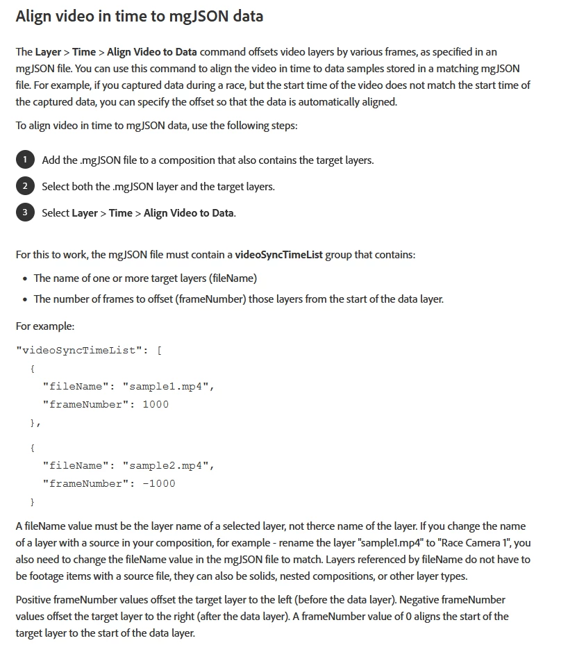 Im trying to use the "align video to data" feature in AE that is documented in "Data driven animation".