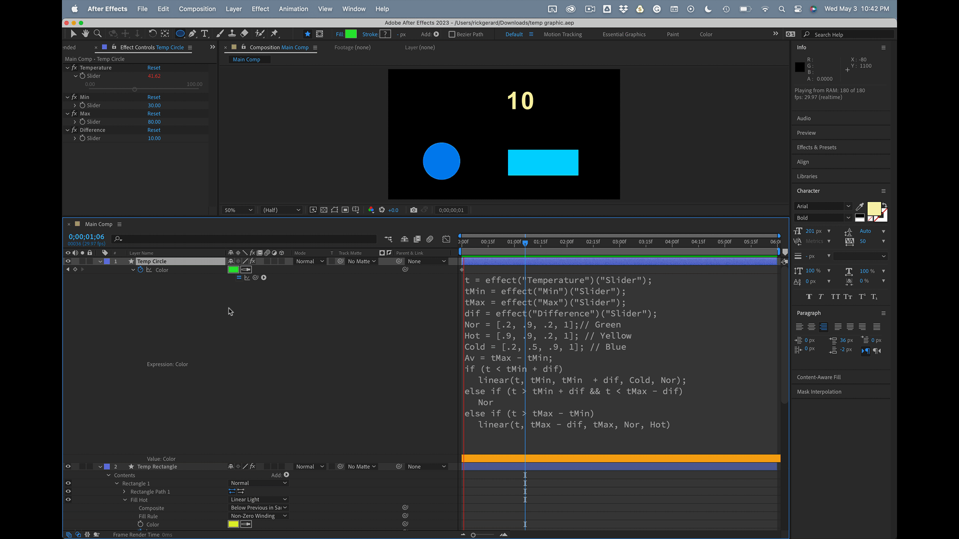 temp1 = thisComp.layer("Temperature").effect("Temperature")("Slider");