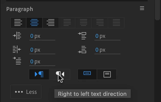 I need to be able to paste HEBREW text into After Effects, but there is no setting to change the paste from Right to Left. This setting IS in Premiere, so you would think it would be easy to put this into SETTINGS in After Effects as well. I can copy the Essential Graphics layer from Premiere and paste it into After Effects, but then I need to adjust the position, font, size, and Style to match the template we have set up-what a hassel. Please add this feature to After Effects to allow PASTE RIGHT TO LEFT.
