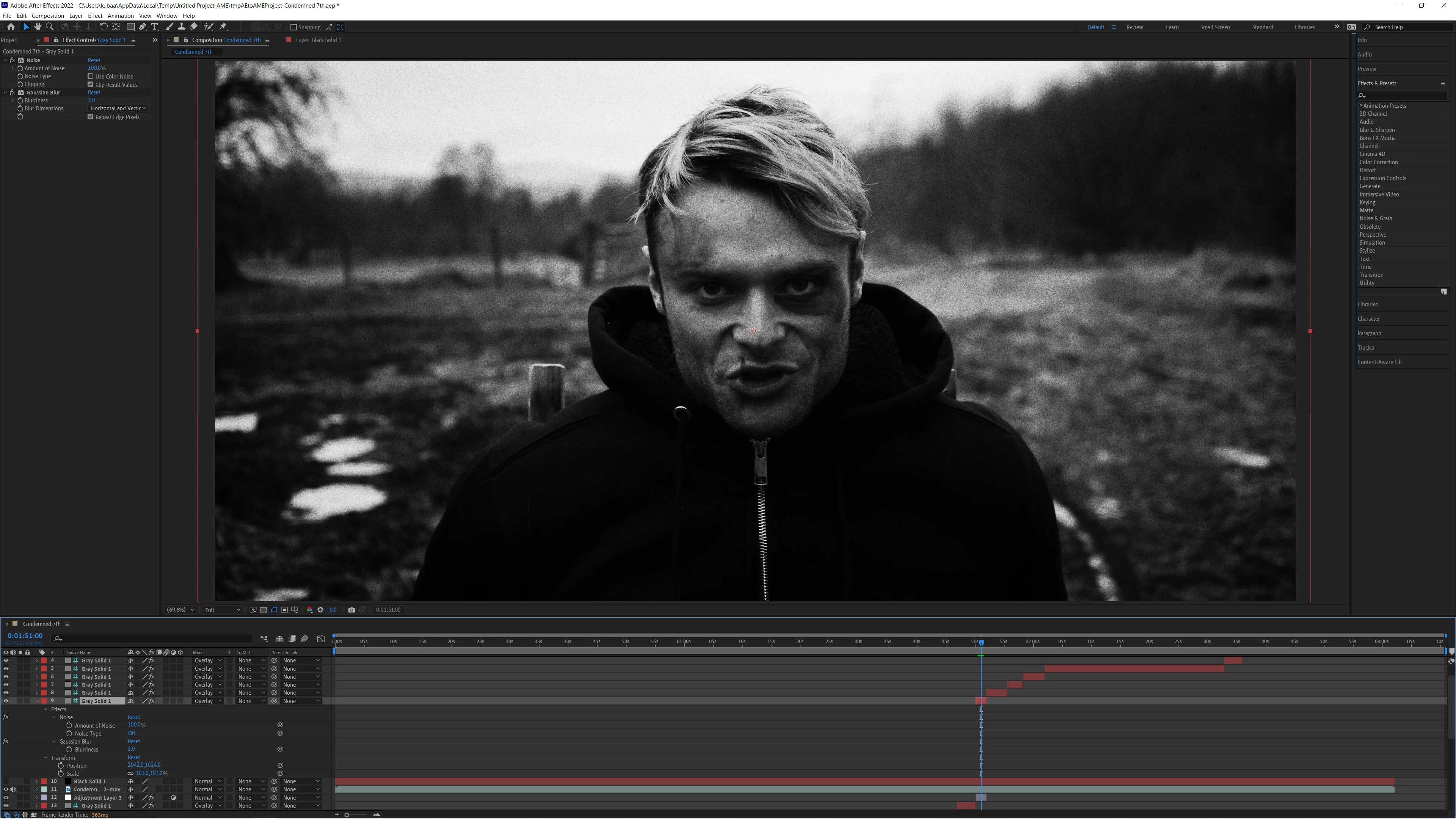 Hi, Im tryin to add some noise to my composition but I cant get it to render. please do ask for any details that im unaware are variables that may effect the export. ( attatched photo, added loads of noise to show its definetely not rendering)