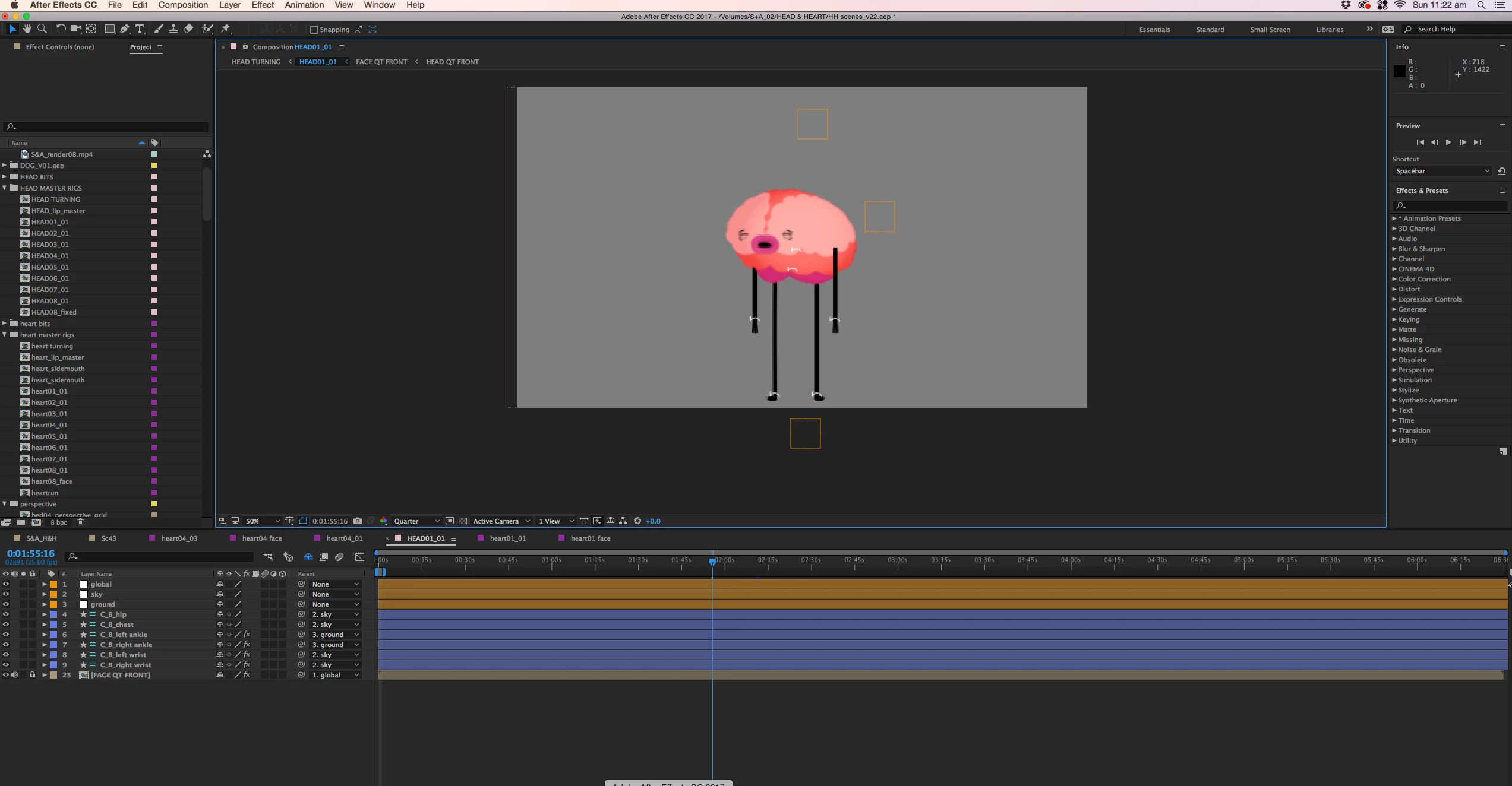 I've build a 2D animation rig using DUIK. I have null object controllers for the hands, feet, chest and hips. I also have these controllers parented to an overarching sky and ground controller (yellow null objects). The puppet works brilliantly most of the time, however lately when I open the rig, the yellow null object controllers are gone and I can no longer select and move anything with my mouse. I have increase or decrease position coordinates to move my puppet.