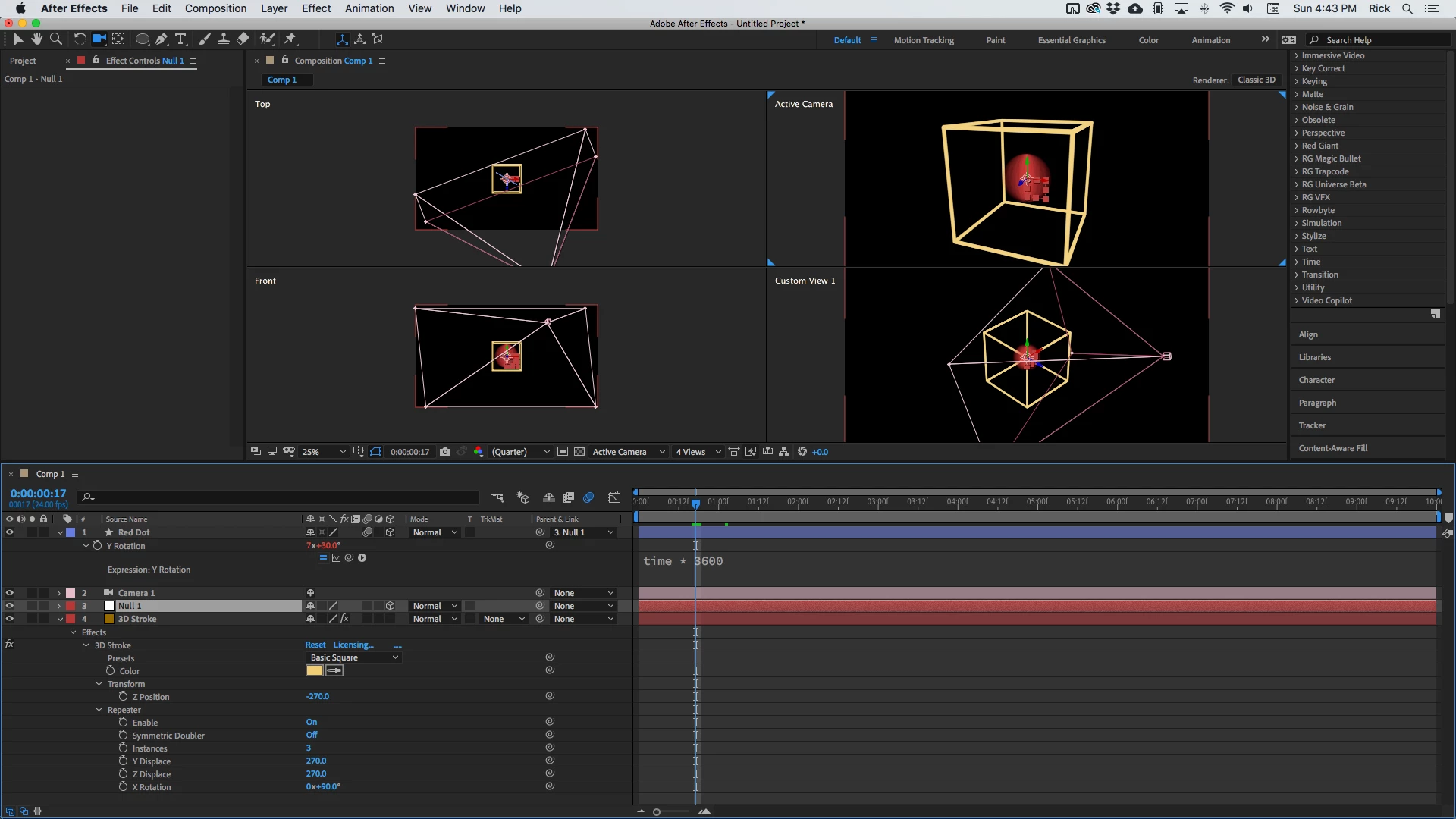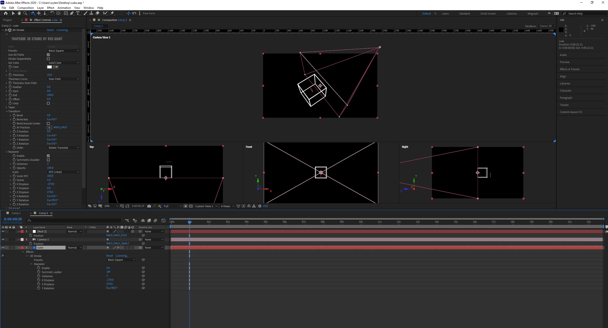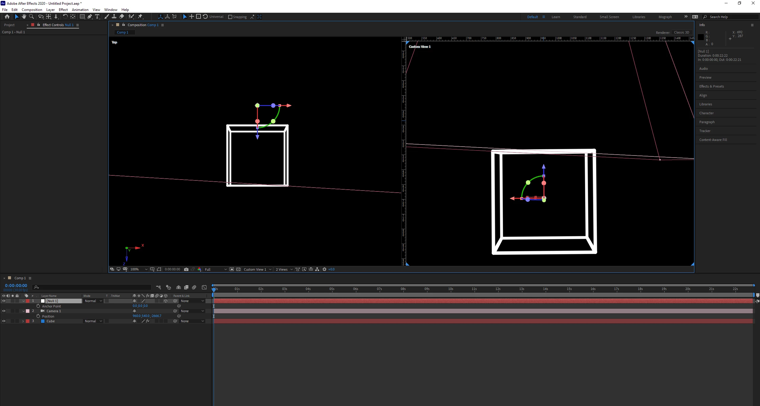 As you can see Null is in the middle of the cube in the Custom view. However, it is outside Cube in the top view. Thanks in advance.